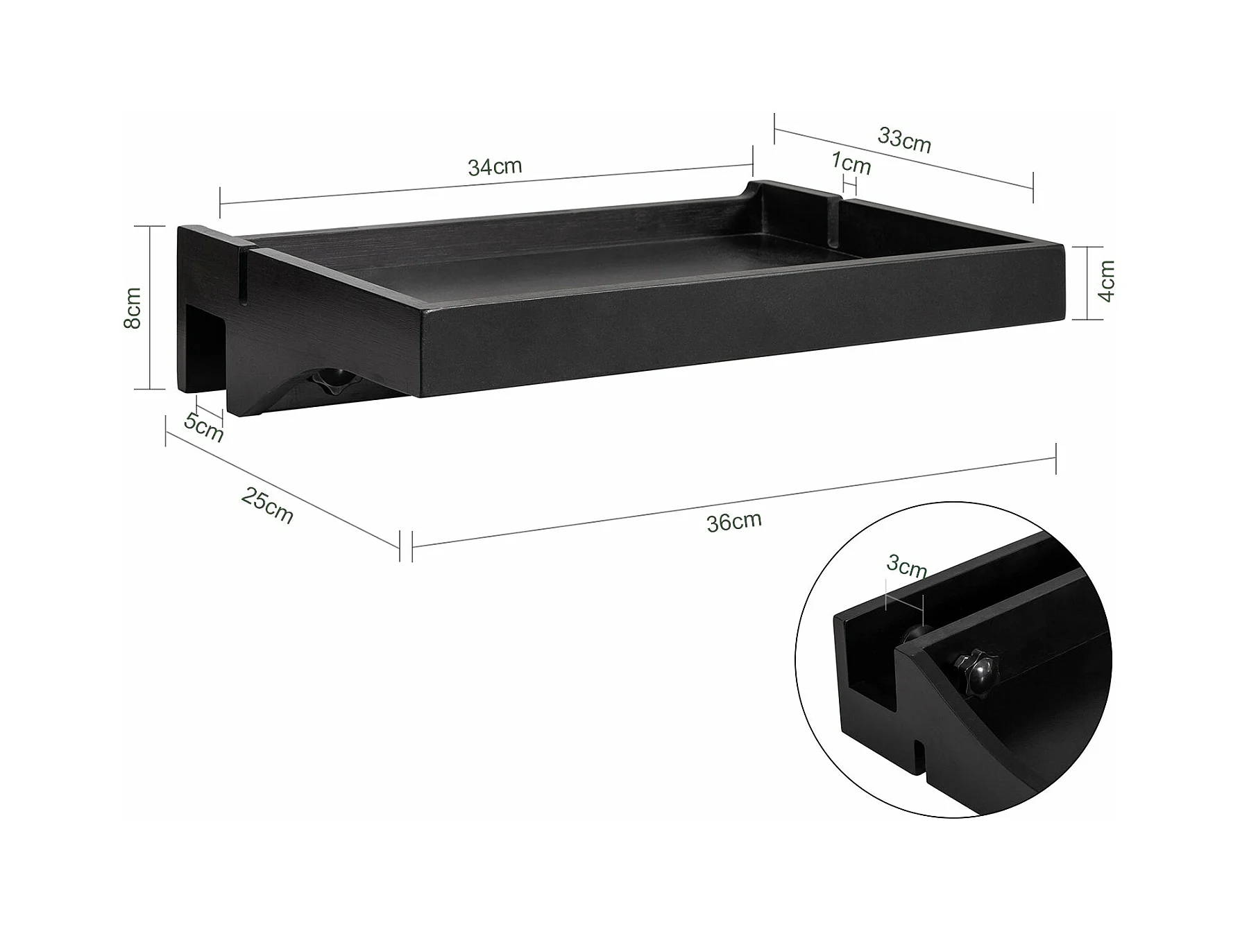 Estante de Noche de bambú Moderno Mesilla de Noche Flotante Ajustable para Habitaciones Pequeñas 36 x 8 x 25 cm Negro NKD01-SCH SoBuy ES