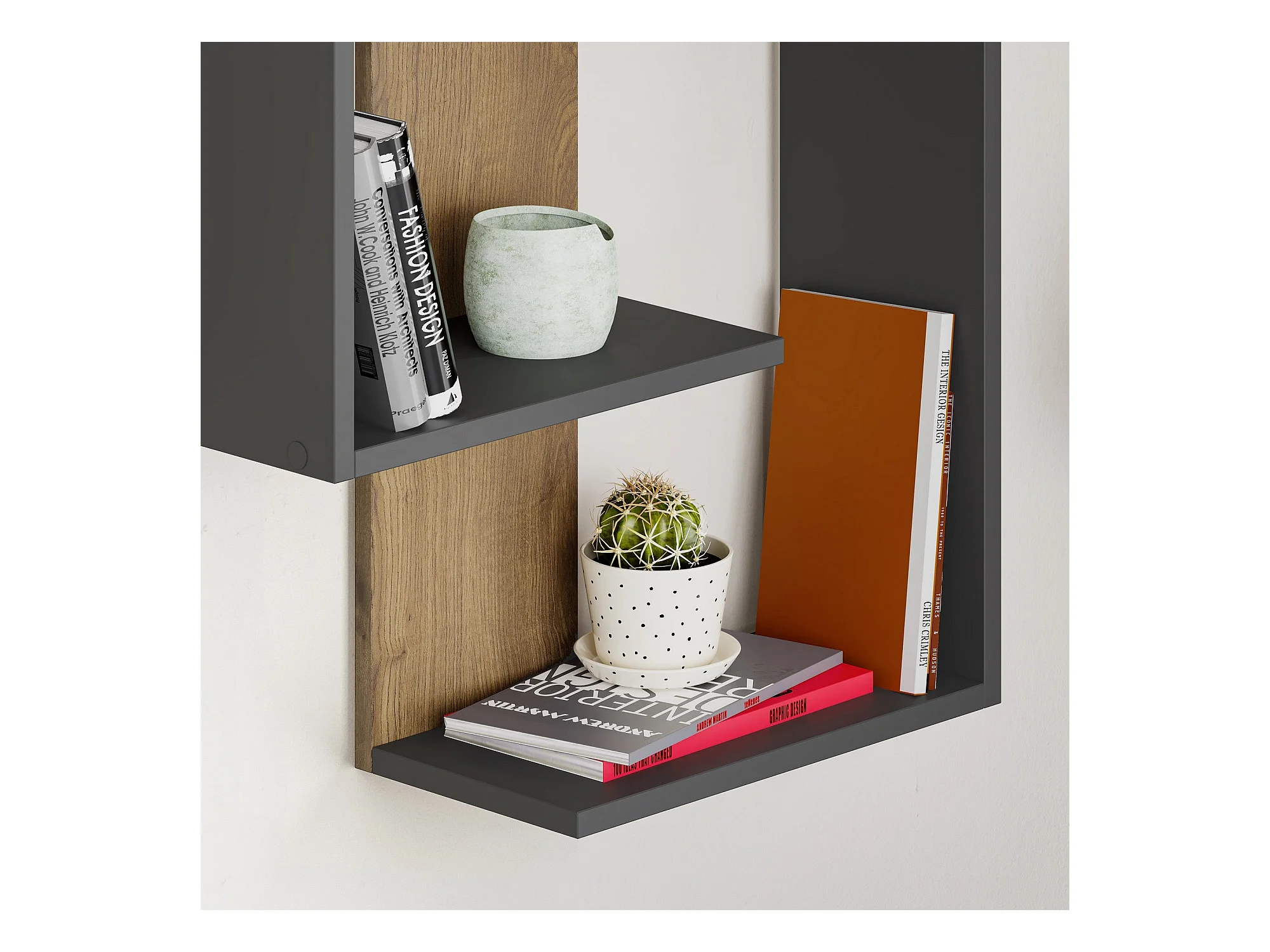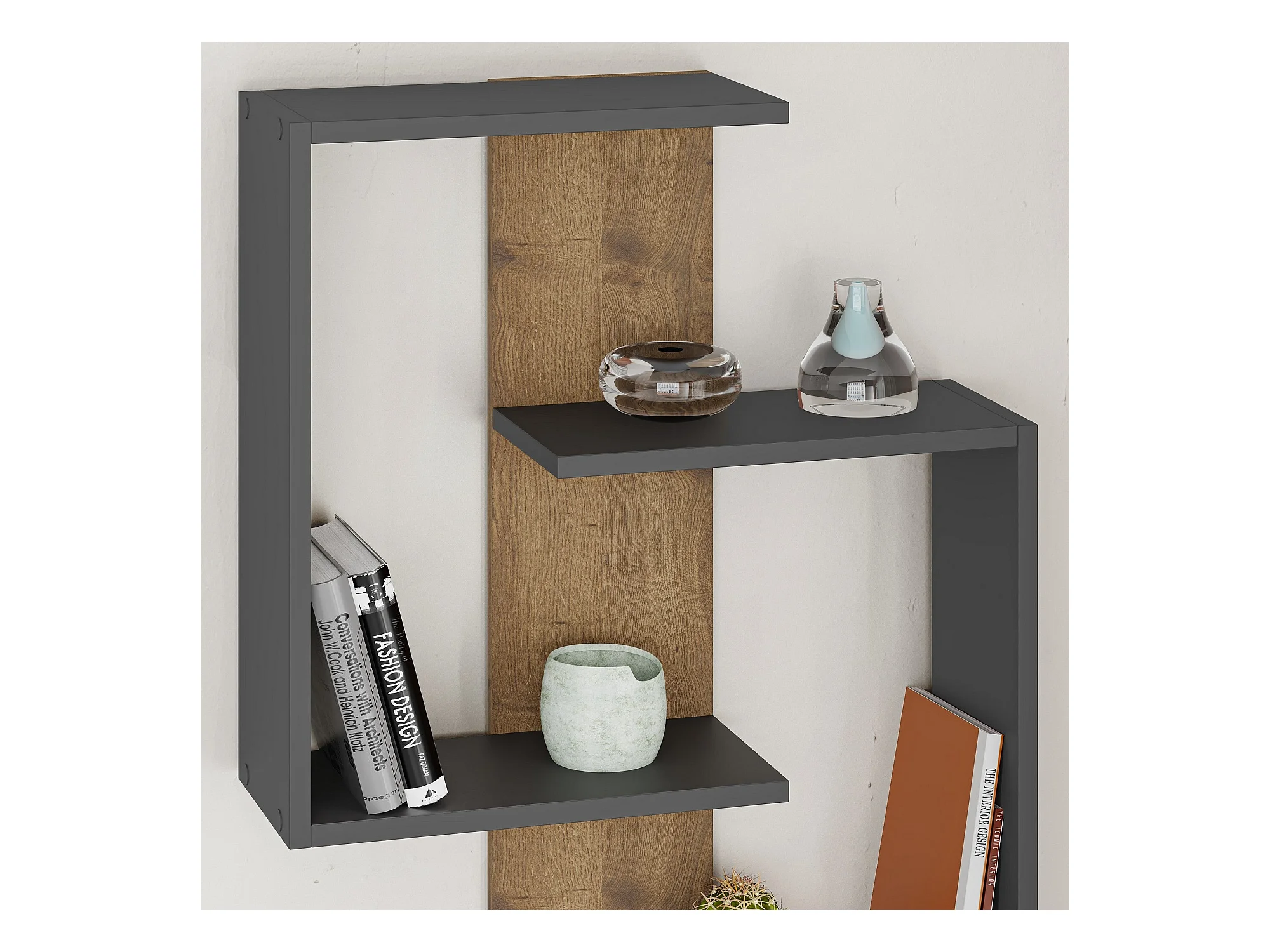 Estante de pared – 64 x 85 x 22 cm – Antracita y Roble – Tablero de partículas recubierto de melamina