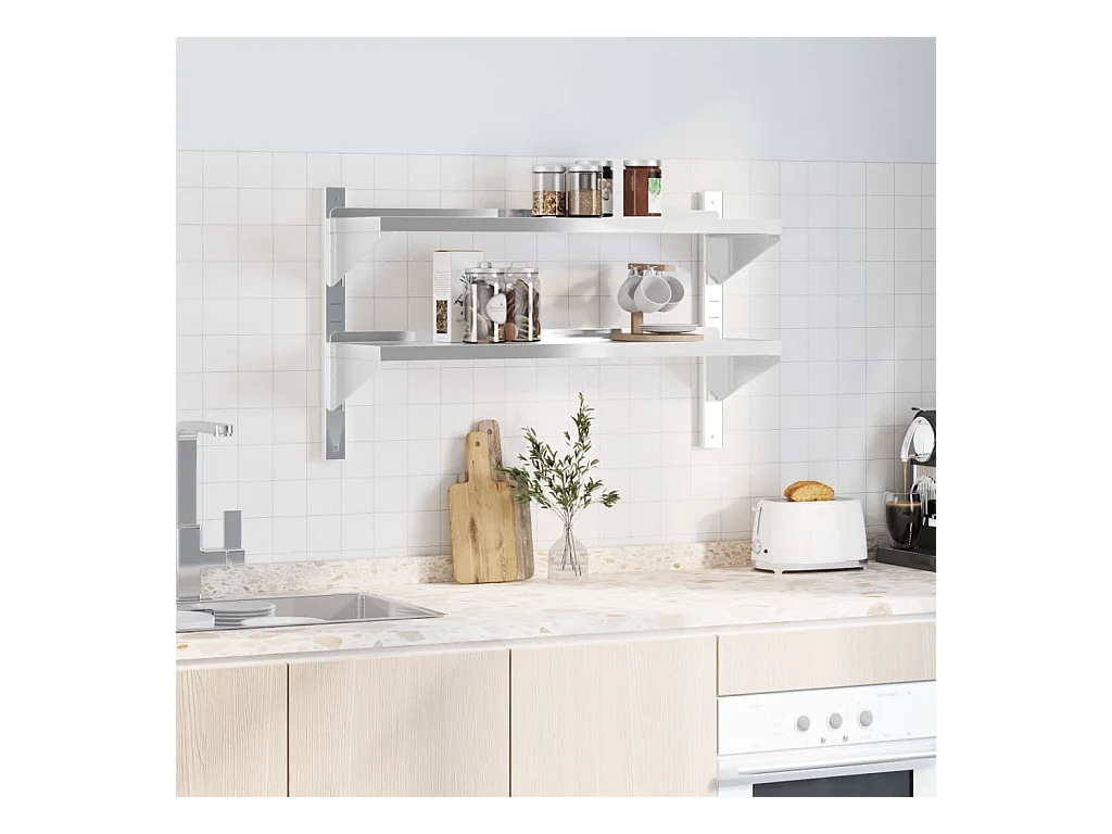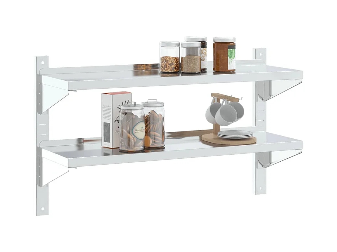 Estantes de pared 2 uds acero inoxidable plateado 100x23,5x3 cm ES406081