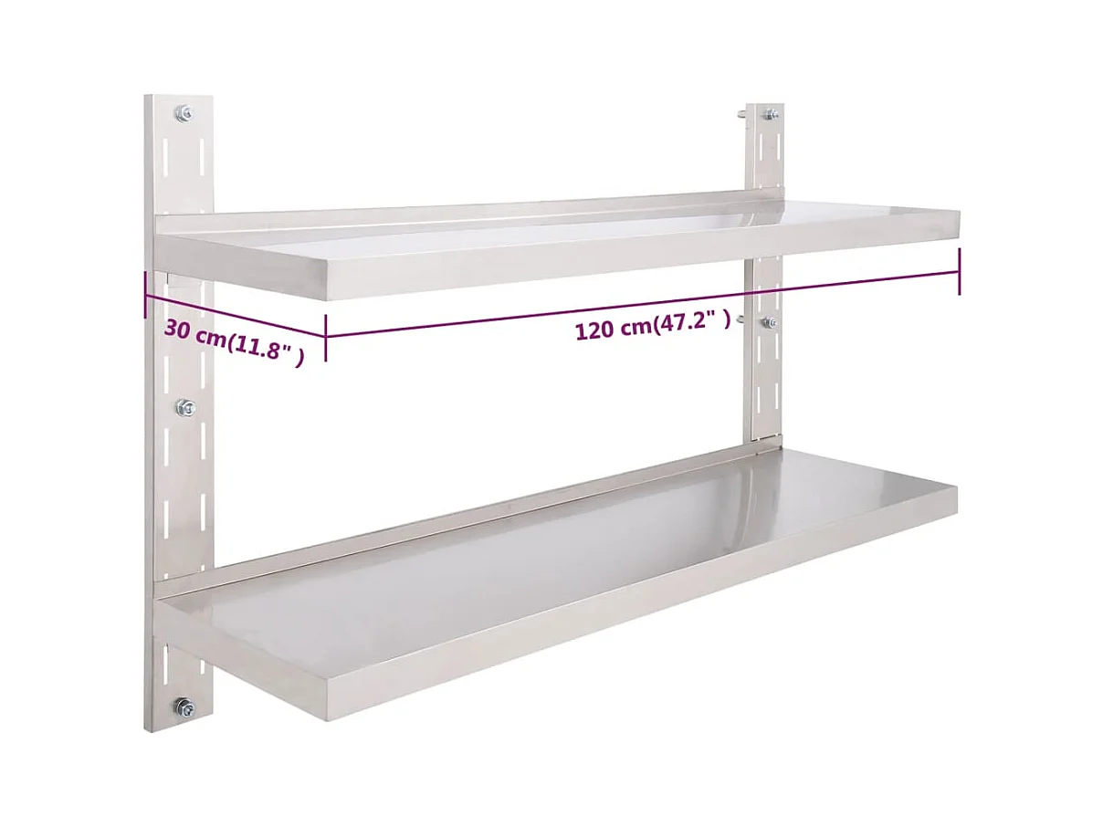 Estante de pared de 2 niveles Acero inoxidable 120x30 cm