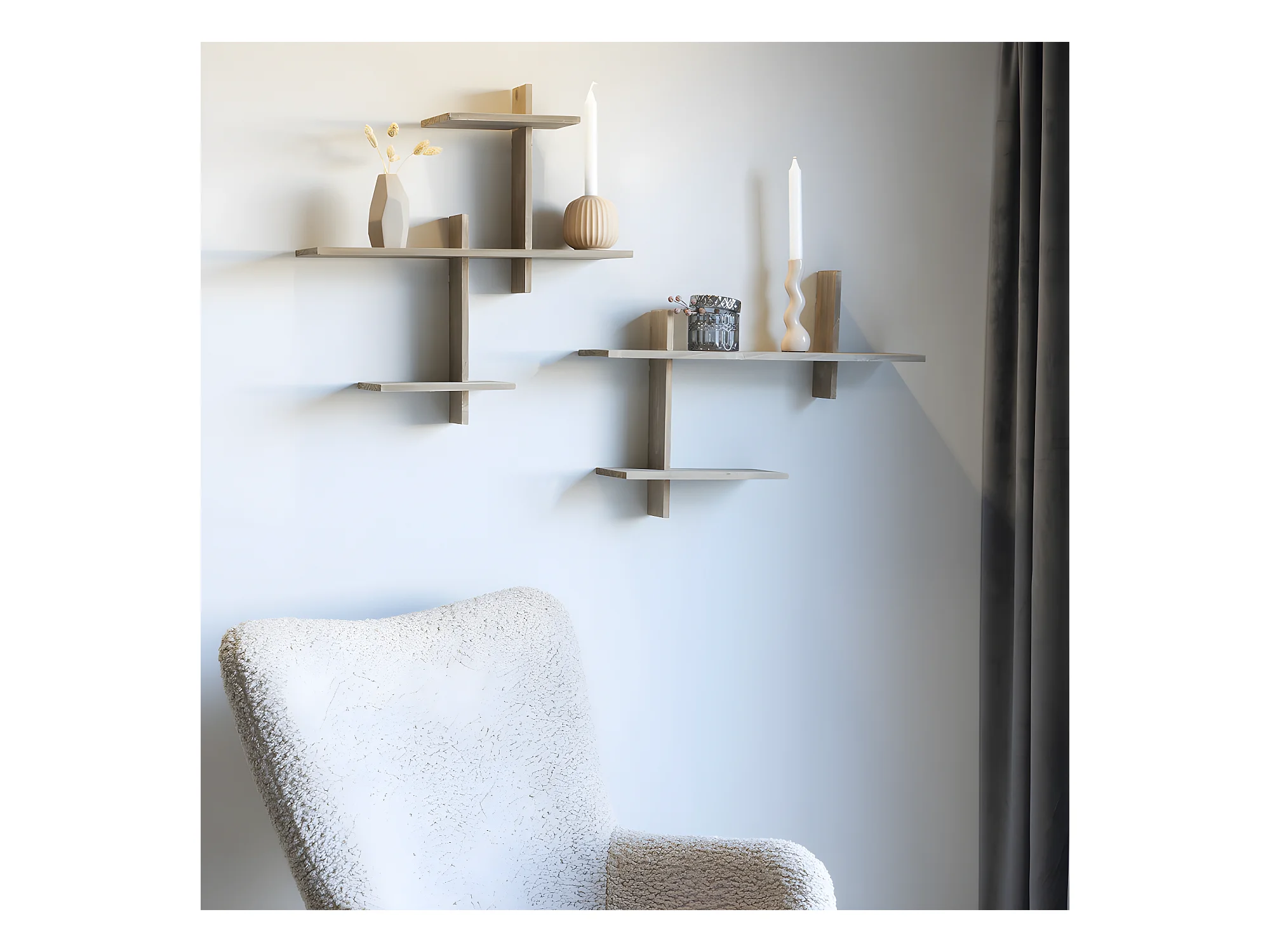Estantería mural geométrica en metal negro y madera maciza L60 cm