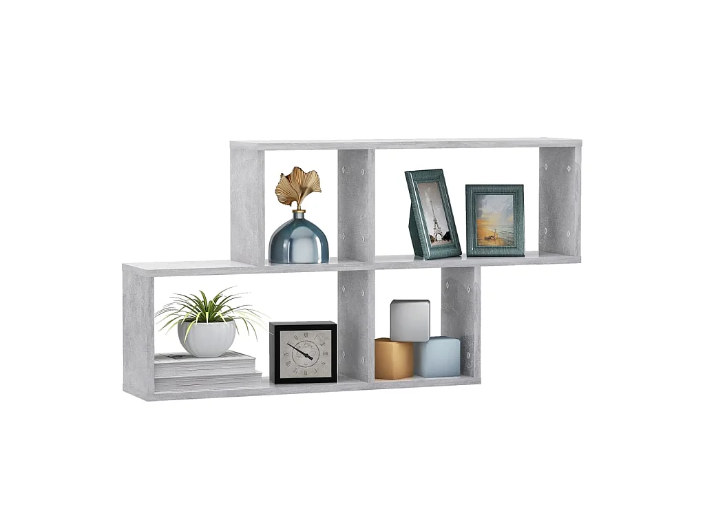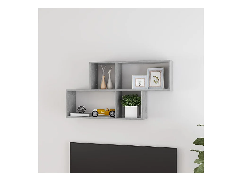 Estante de pared de madera de ingeniería de color gris hormigón con cajones
