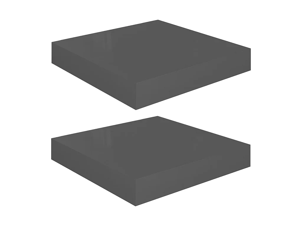 Estante de pared de pared 2 uds MDF gris brillo 23x23,5x3,8 cm ES59369