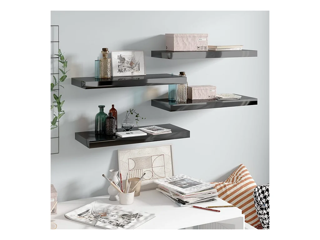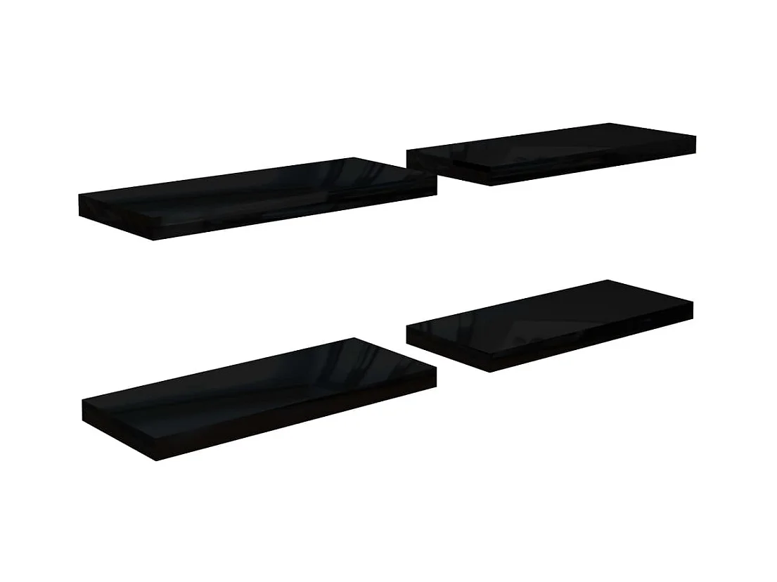 Estante de pared de pared 4 uds MDF negro brillo 60x23,5x3,8 cm ES50657