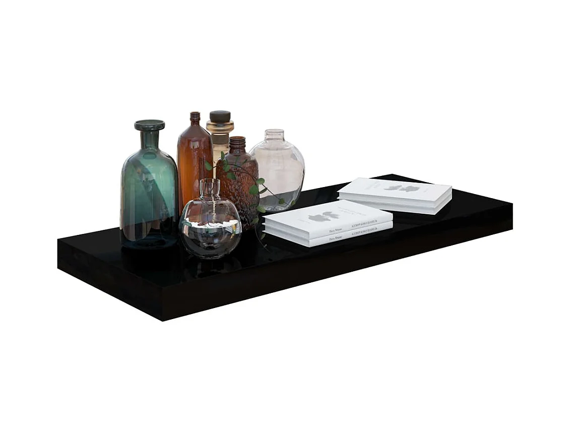 Estante de pared de pared MDF negro brillante 80x23,5x3,8 cm ES89808