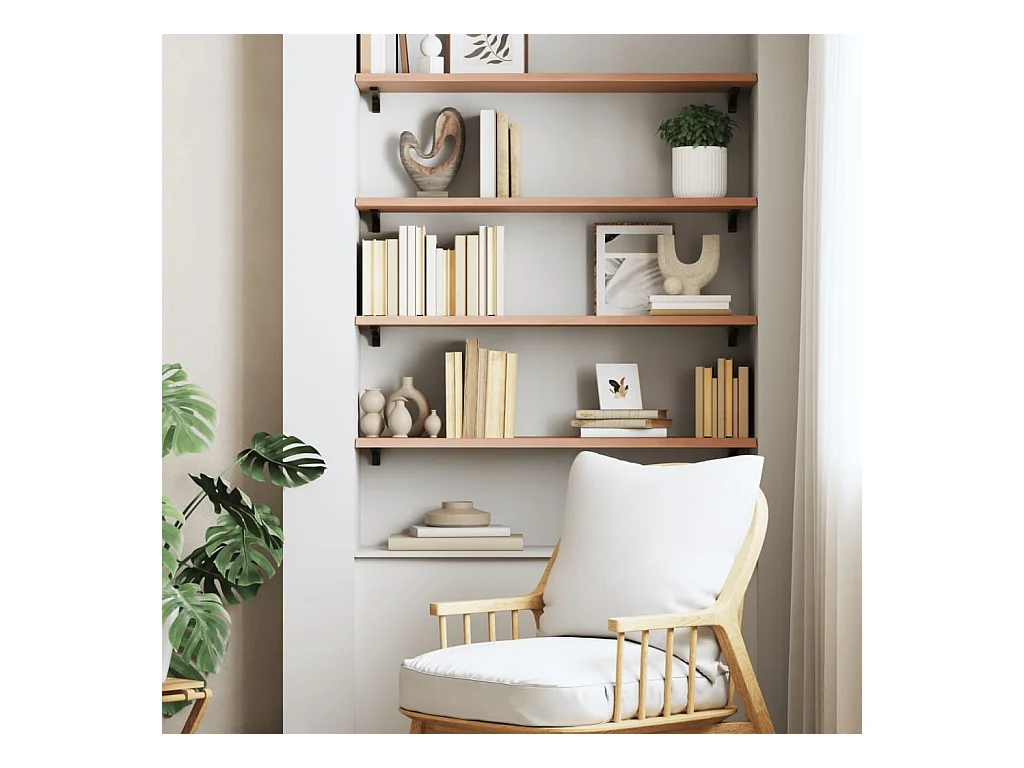 Estante de pared marrón claro en madera maciza de roble tratado