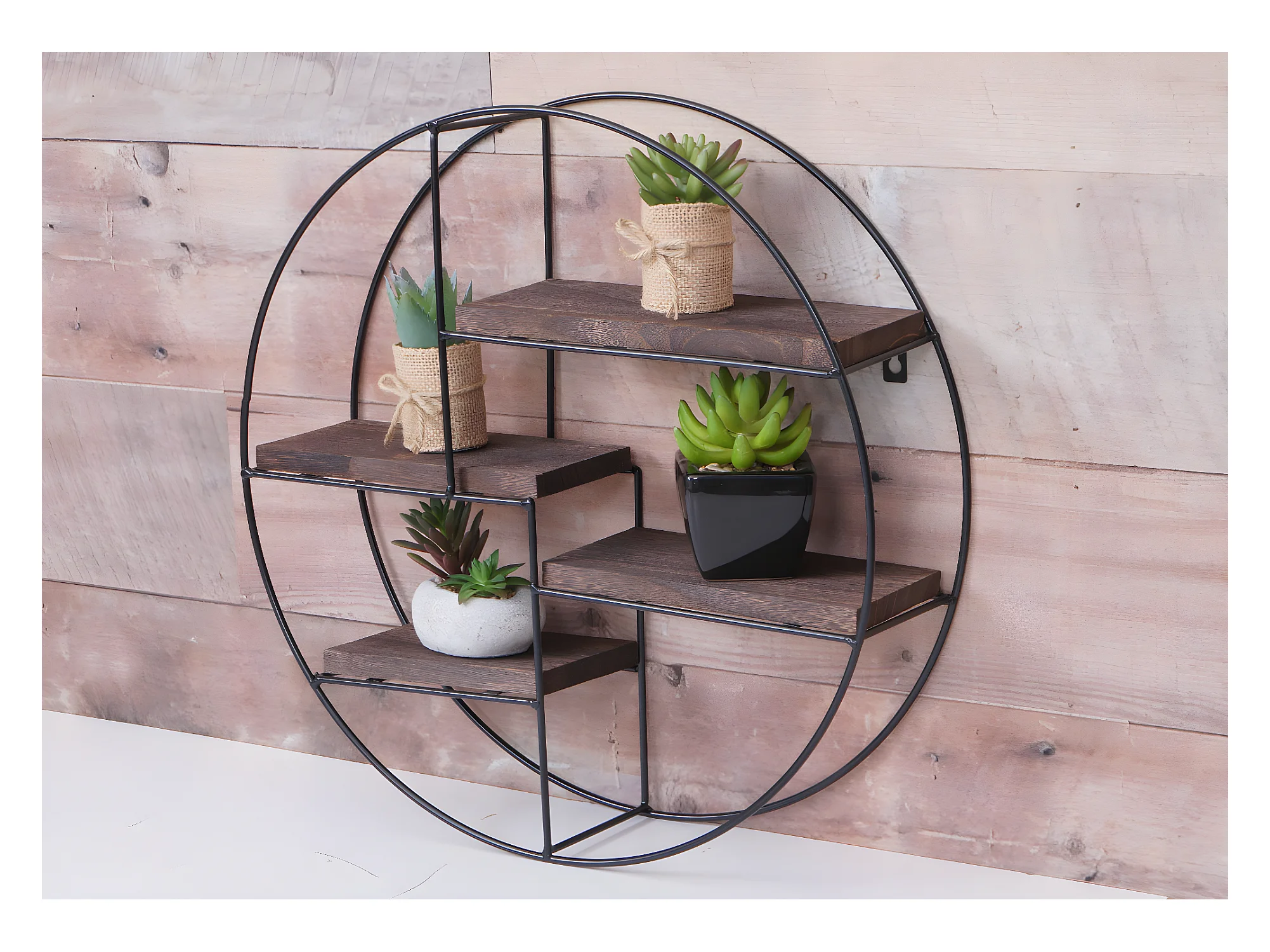 Conjunto estantes pared 5 piezas madera maciza acacia y acero ES868290