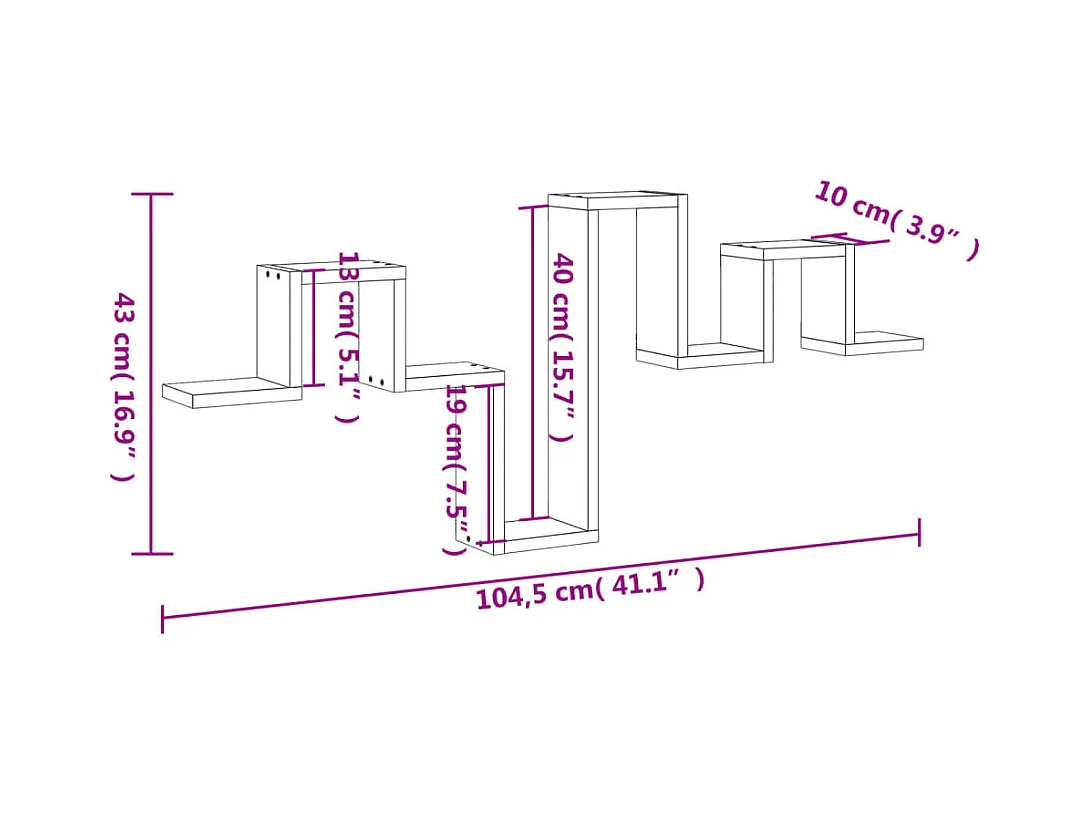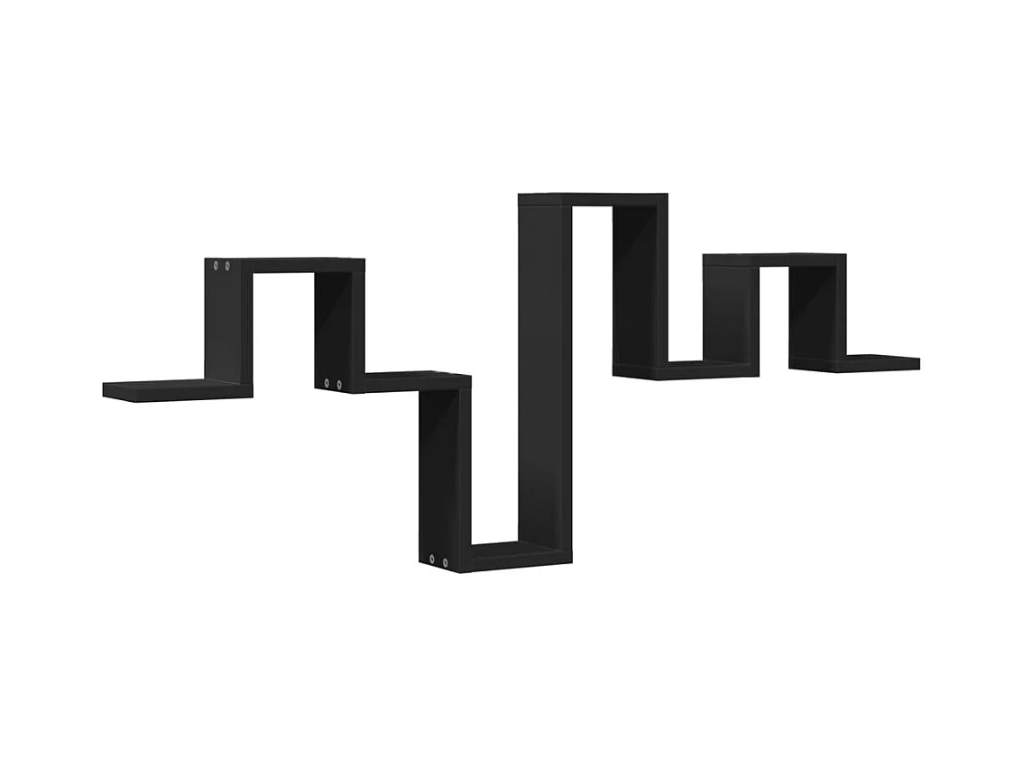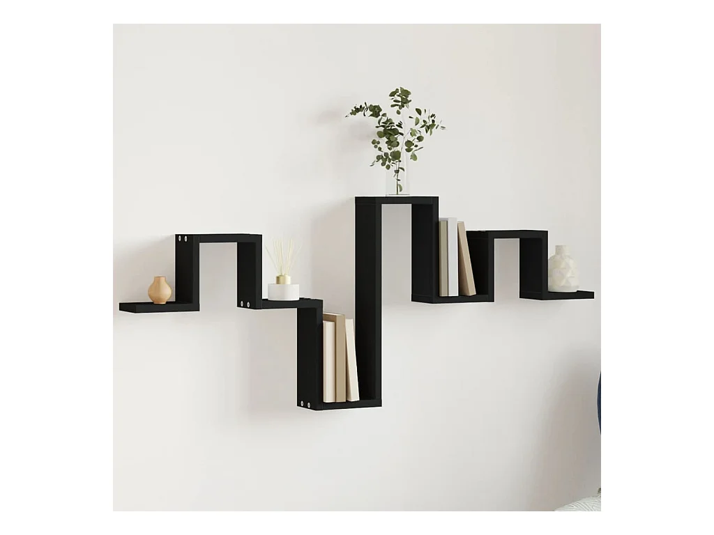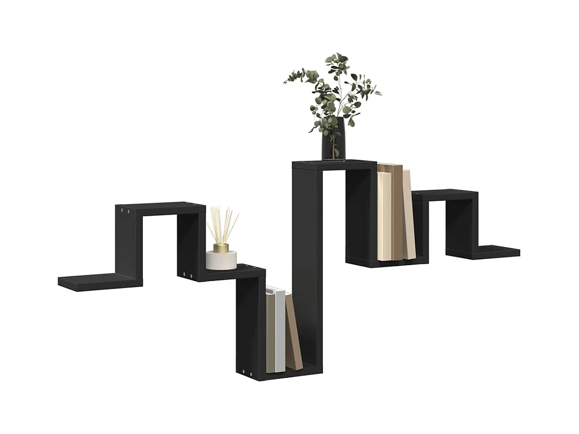 Estantes de pared de 3 piezas de madera de ingeniería negra