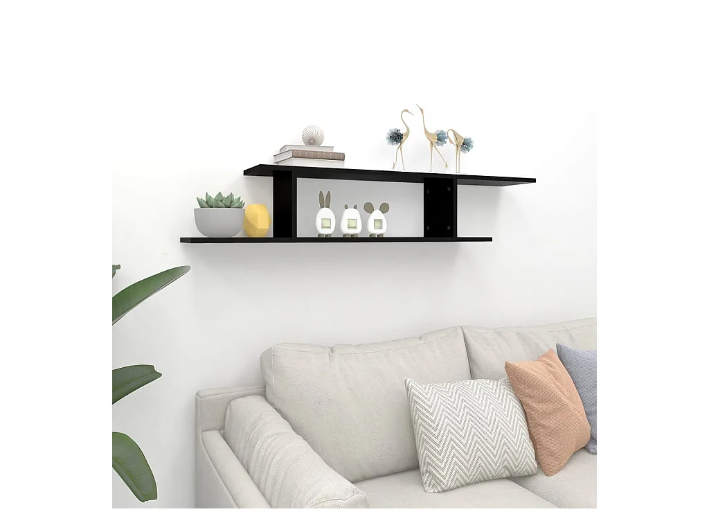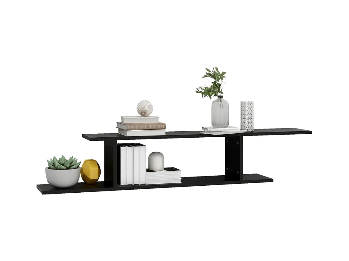 Estantes de pared pared 2 uds MDF negro brillo 120x23,5x3,8 cm ES25767