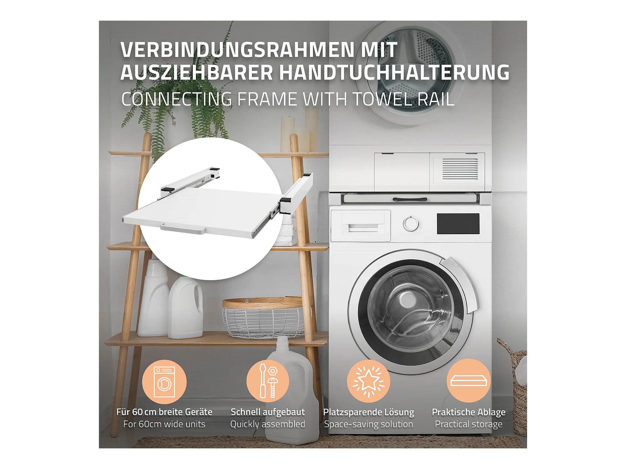 Estante extraíble intermedio para lavadora con toallero blanco 60x60 cm con asa