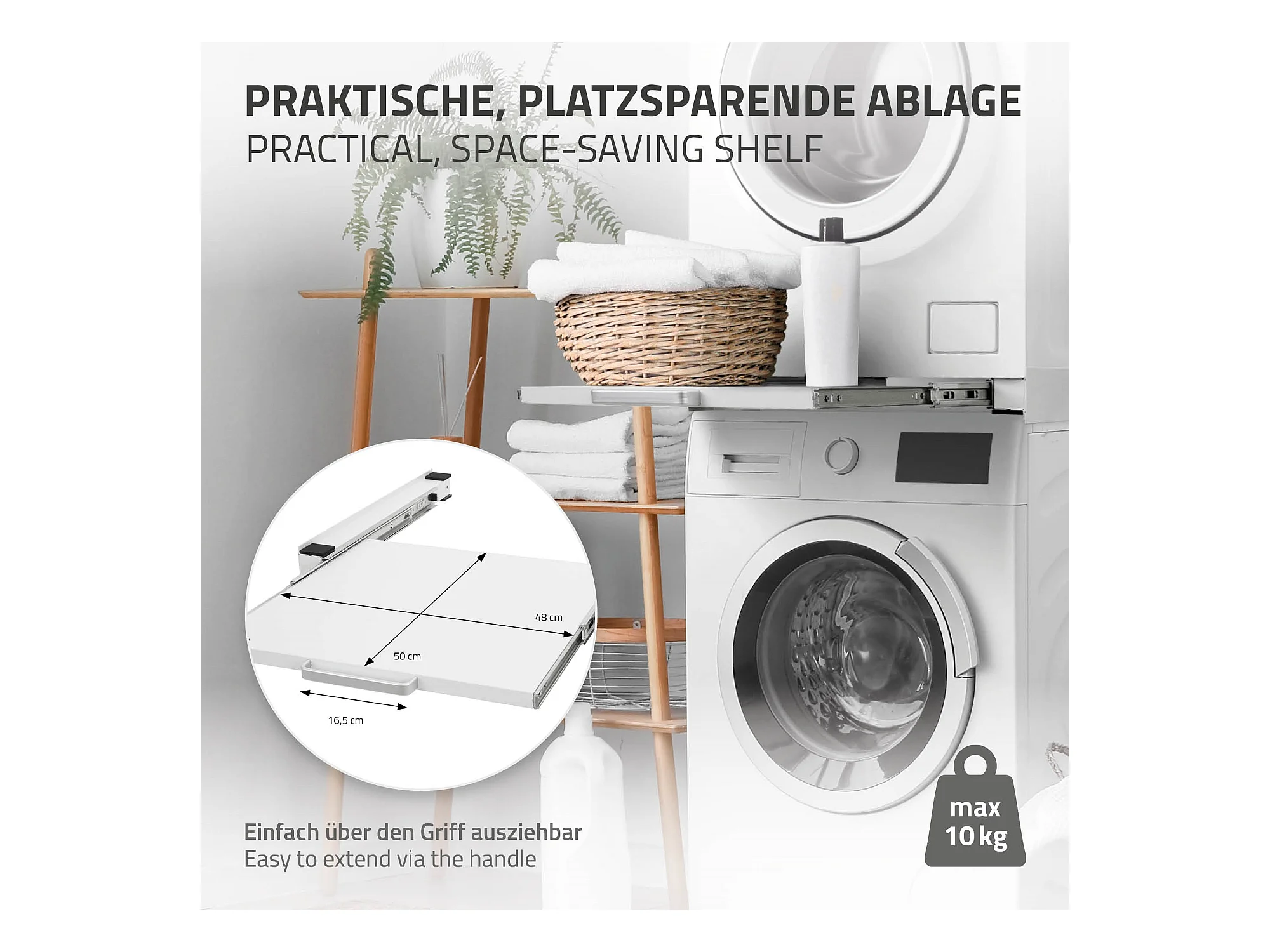 Estante extraíble intermedio entre lavadora y secadora blanco 60 x 60 cm con asa