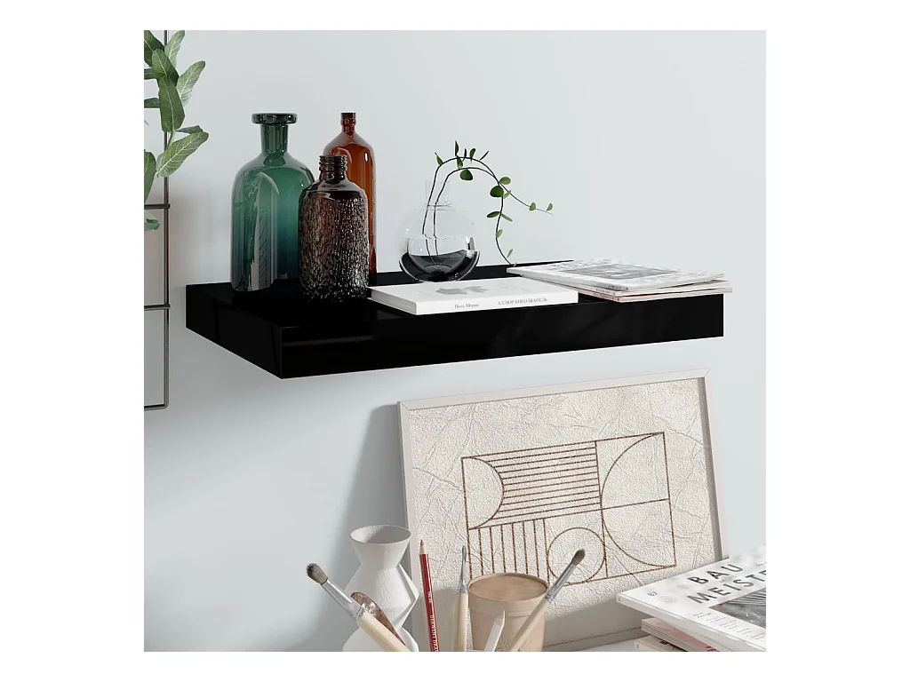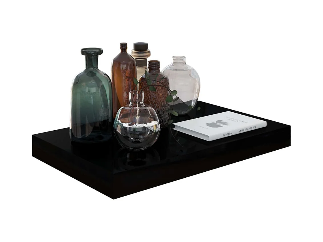 Estante flotante de pared MDF negro brillo 50x23x3,8 cm