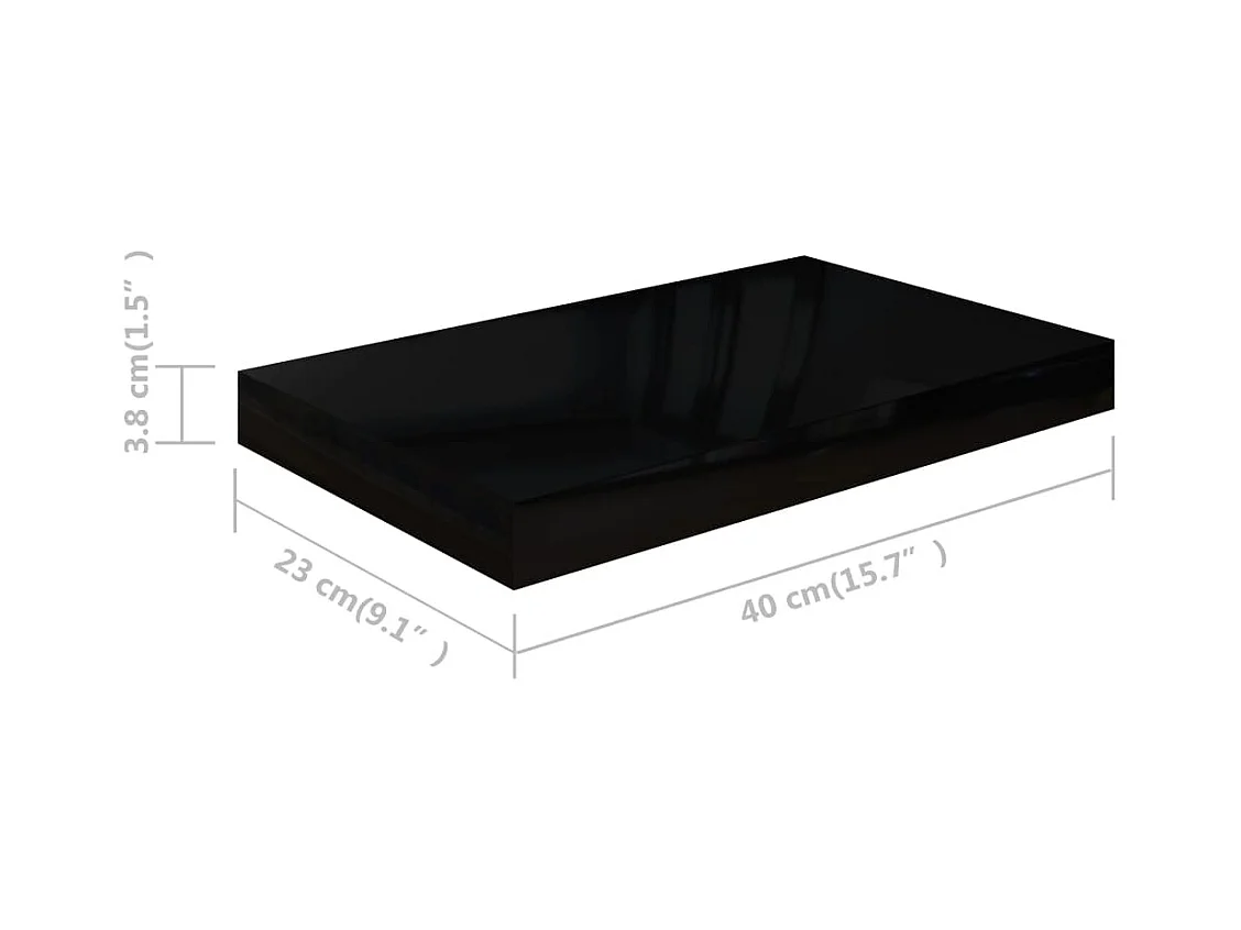 Estante flotante de pared MDF negro brillo 40x23x3,8 cm