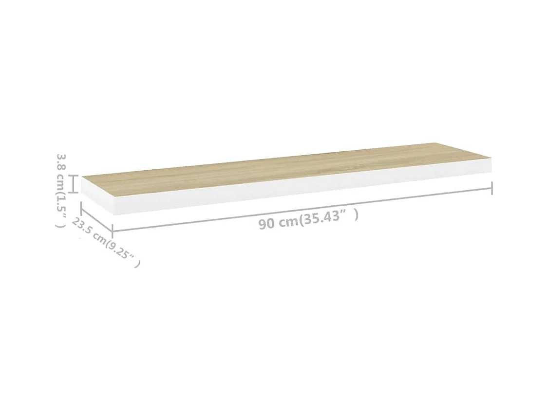 Estante flotante de pared Roble y blanco 90x23,5x3,8 cm MDF