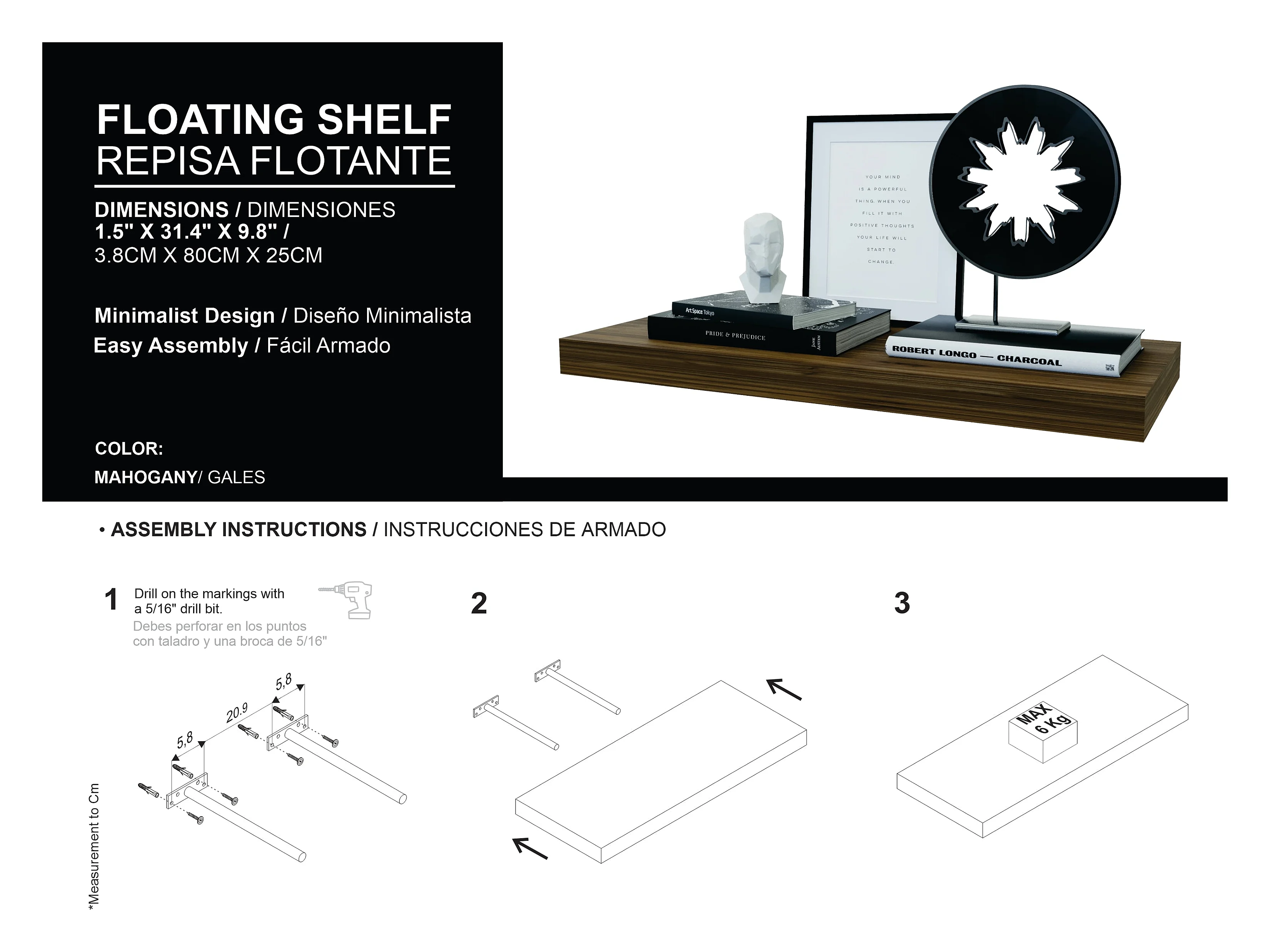 Estante flotante gales en melamina con 2 estantes , 3.8 cm X 80 cm X 25 cm