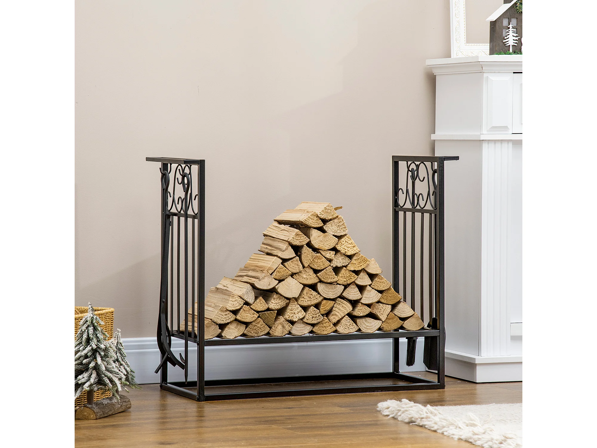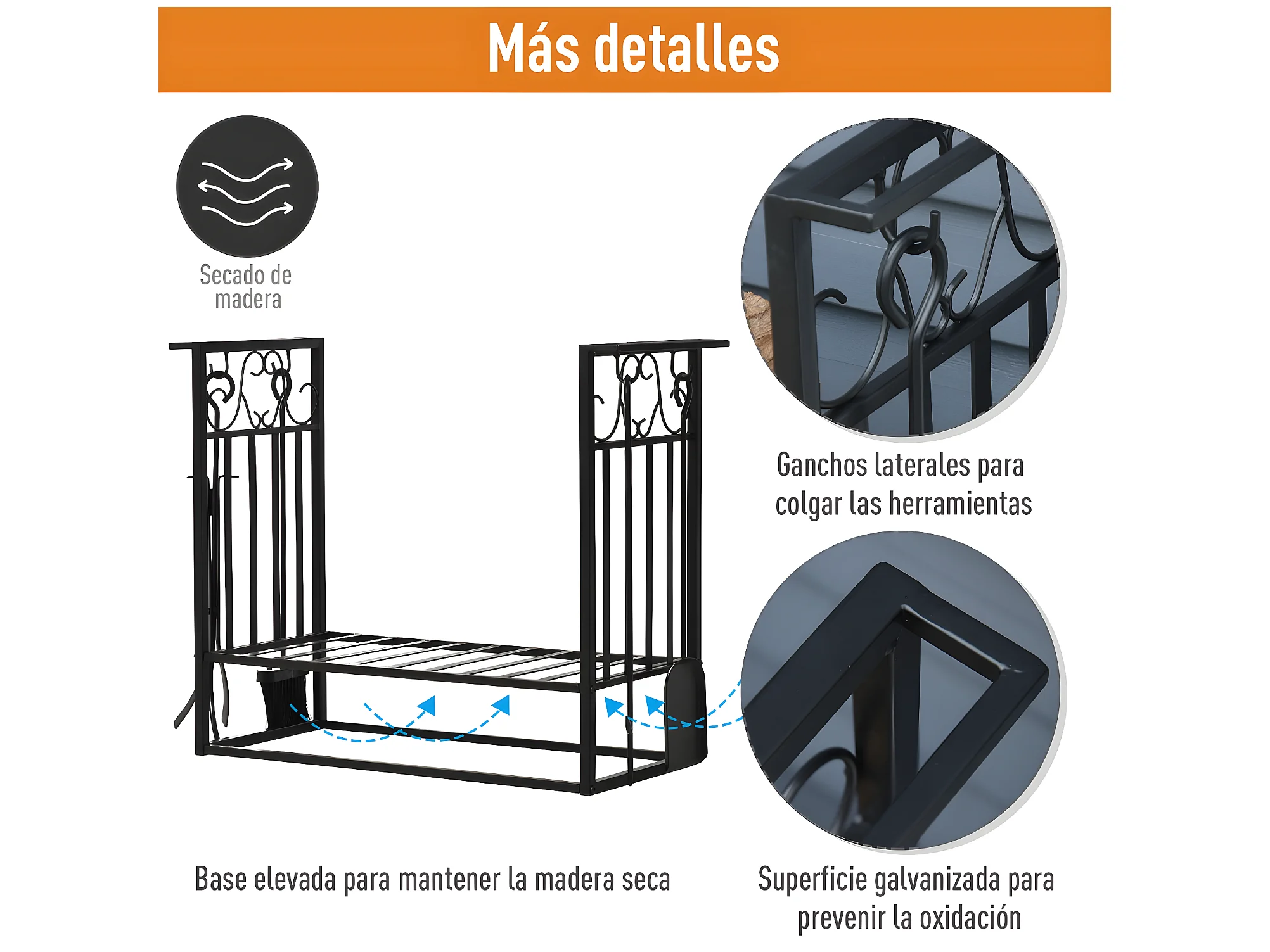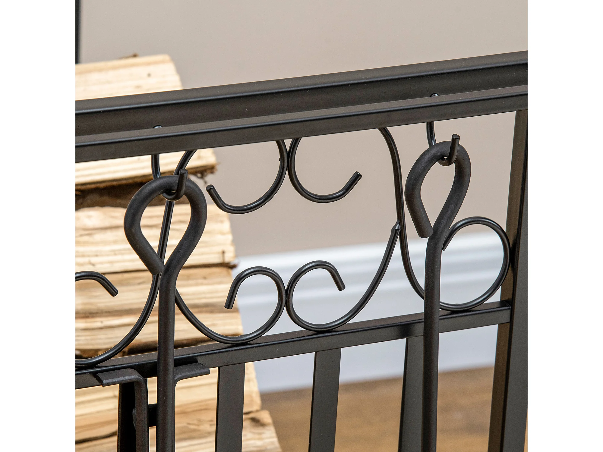 Estante para leña negro 75x30x60 cm HOMCOM