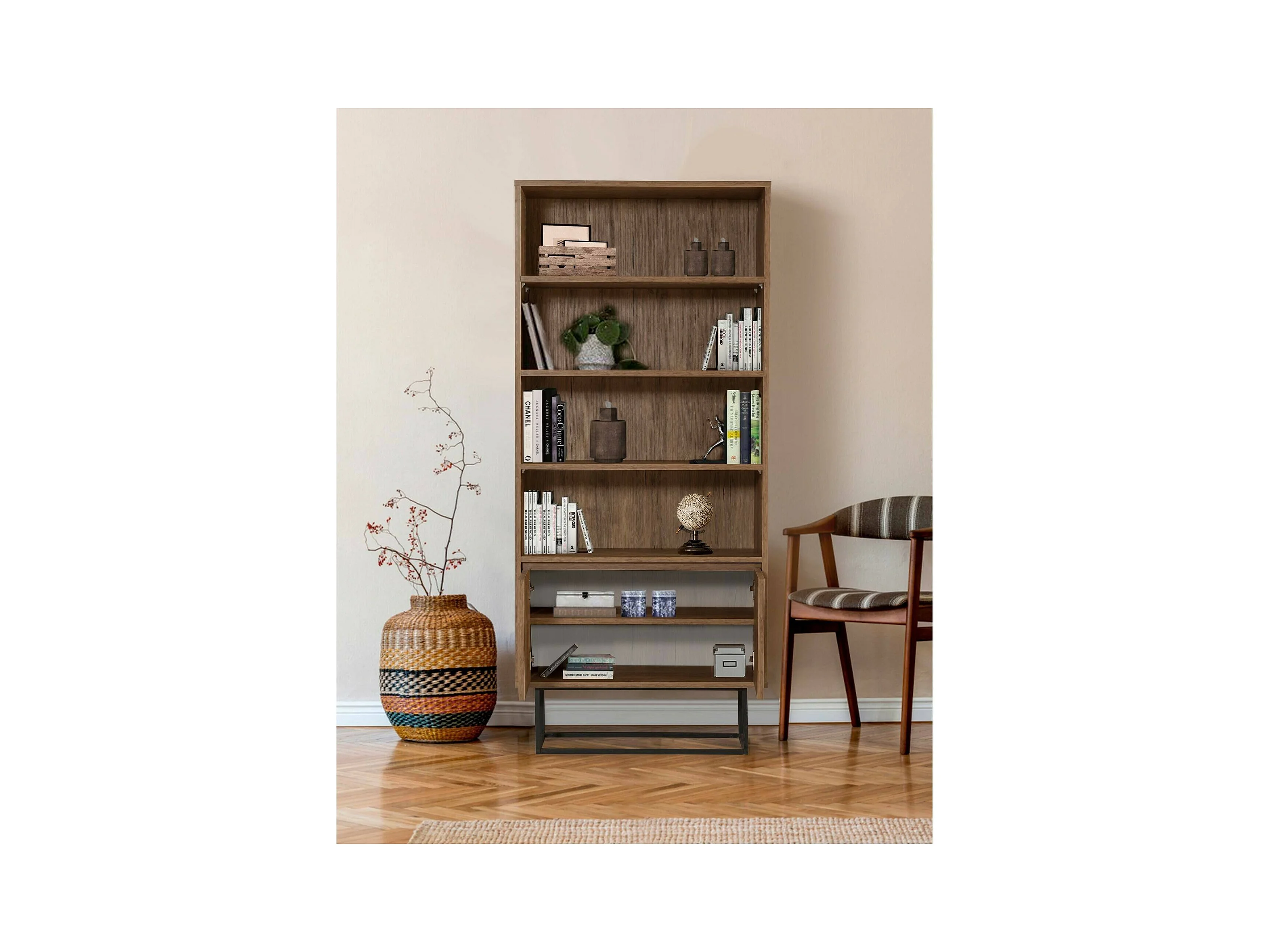 Estante para libros Dbozhana, Estante de oficina, Porta libros móvil, Biblioteca, 80x36h182 cm, Nogal y Negro