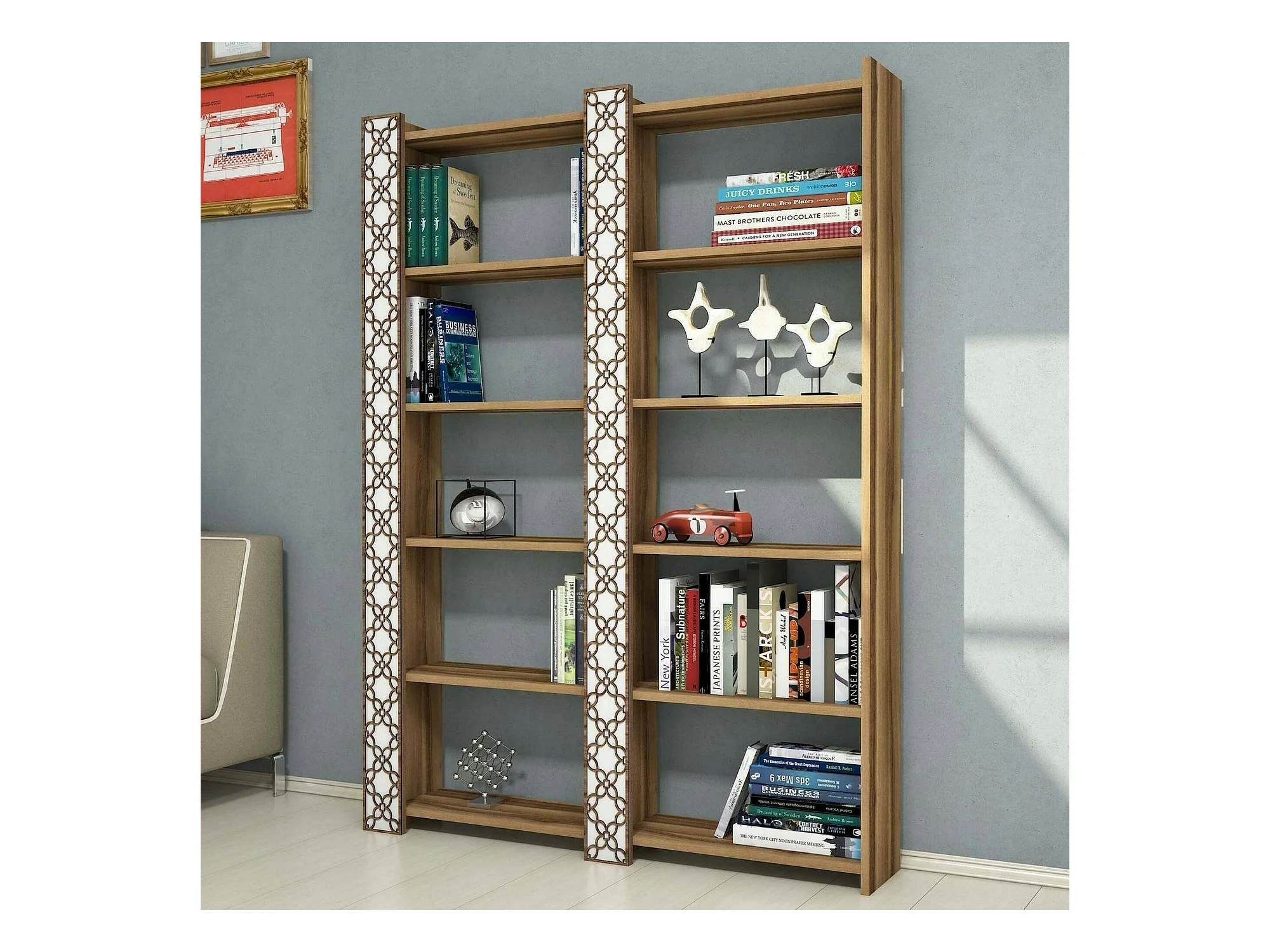Estante para libros Destéve, Estante de oficina, Porta libros móvil, Biblioteca, 125x24h170 cm, Nogal y Blanco