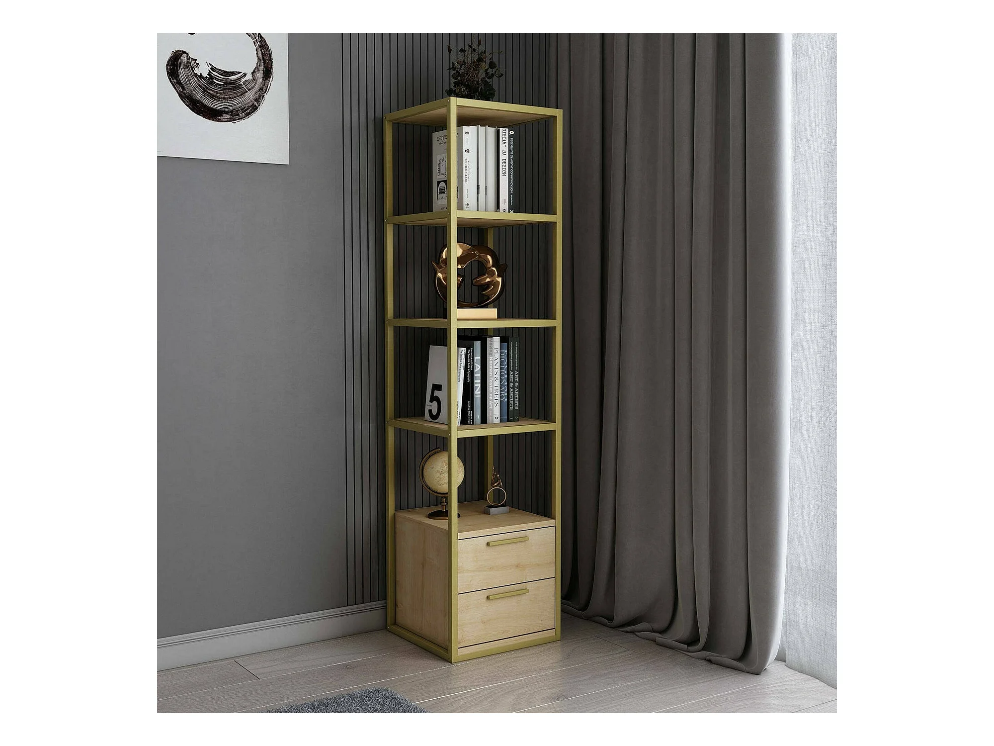 Estante para libros Dfogliat, Estante de oficina, Porta libros móvil, Biblioteca, 39x39h169 cm, Oro y Roble