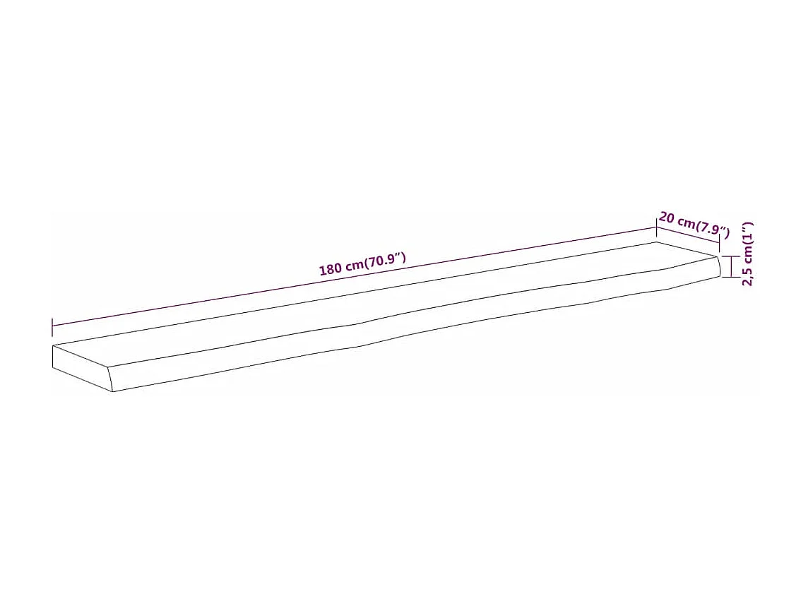 Estante pared rectangular madera acacia borde vivo 180x20x2,5cm