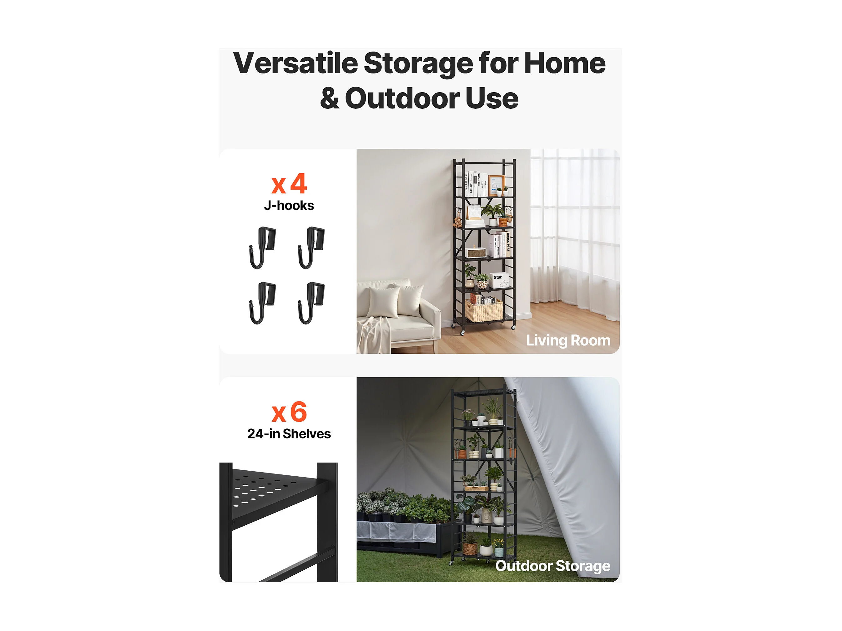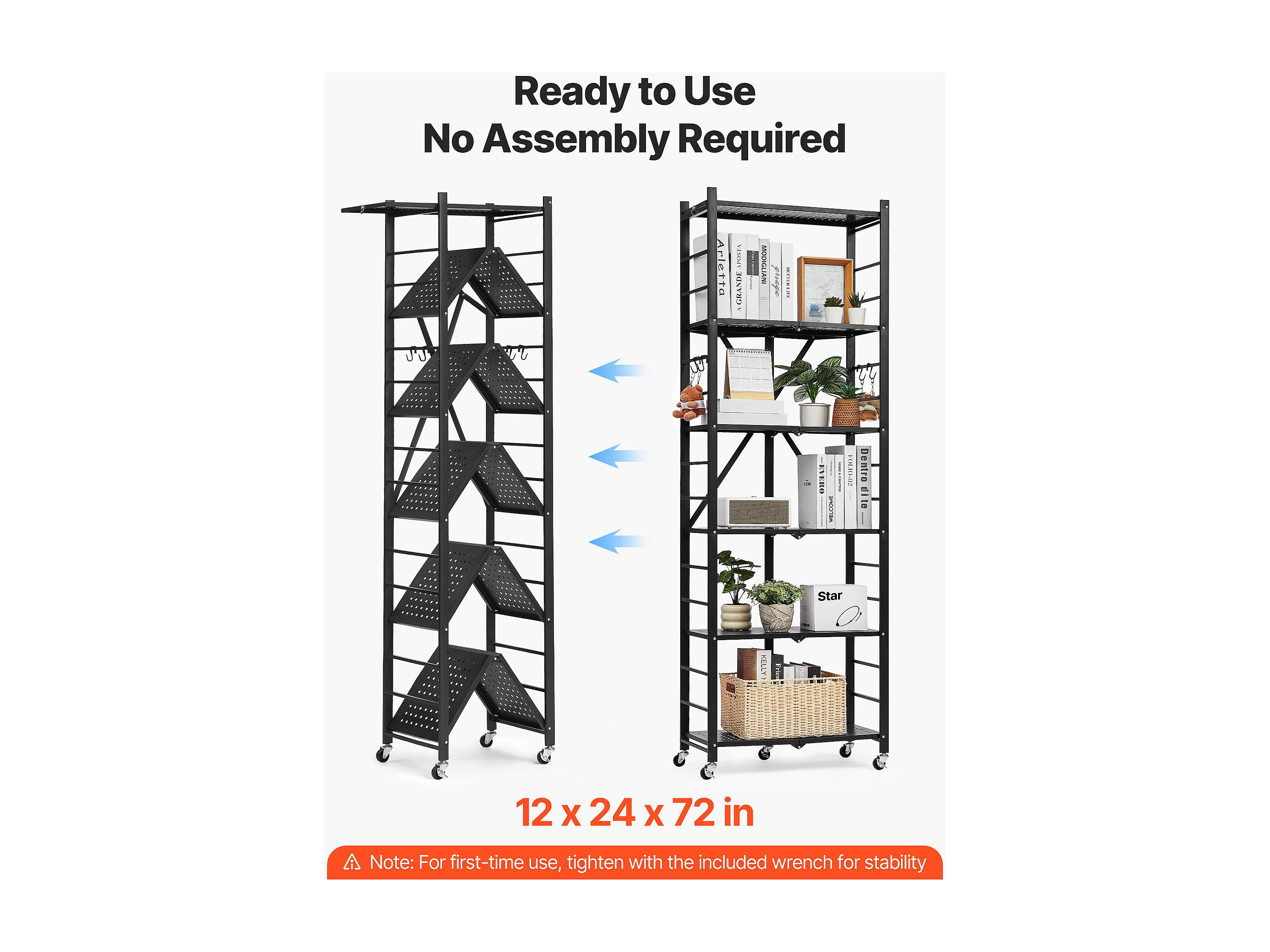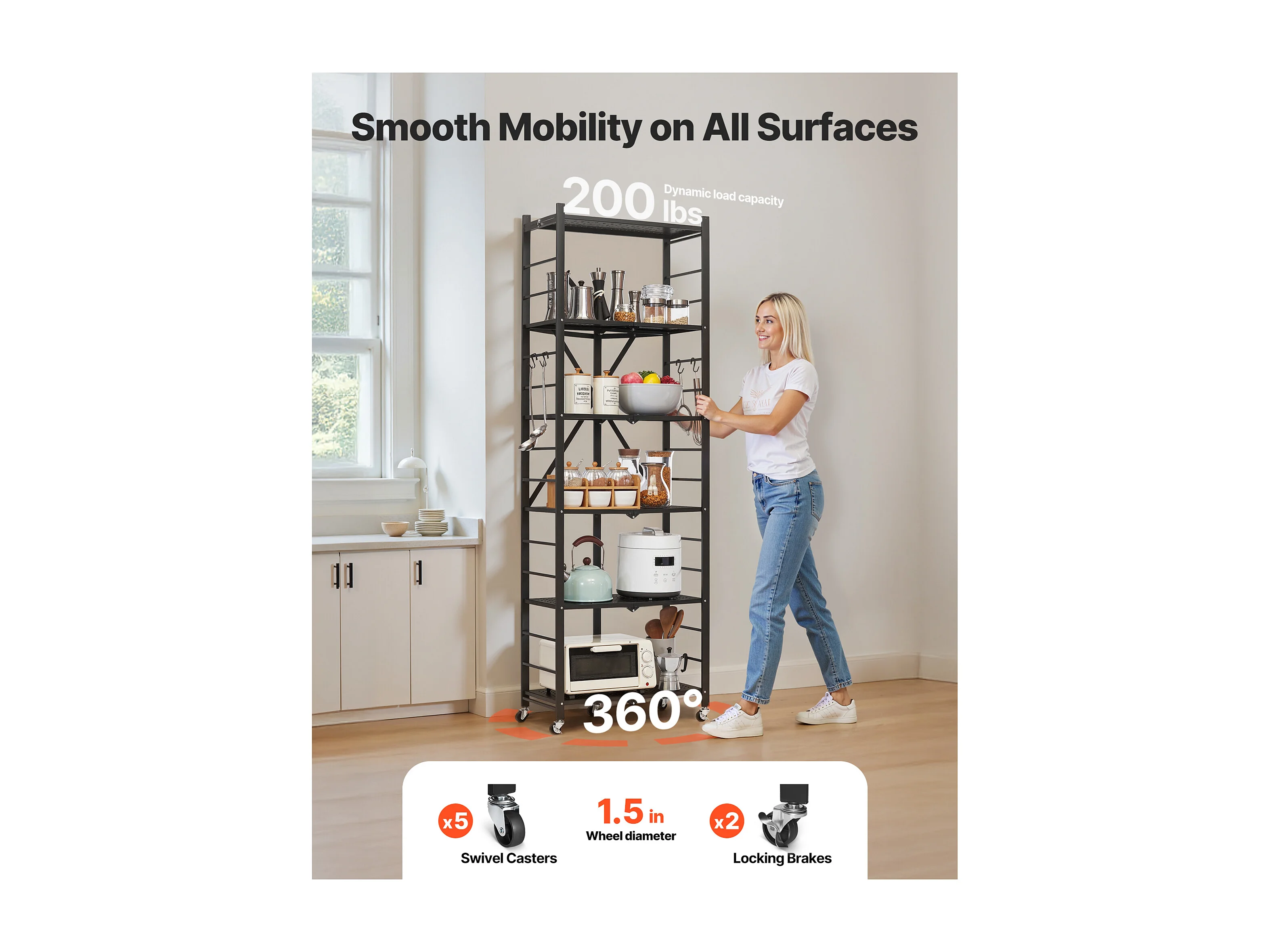 Estante Plegable SucceBuy Estantería Plegable Móvil de 6 Niveles, 61 x 30 x 183 cm, Fabricada en Metal Resistente, con una Capacidad Estática de 340 kg