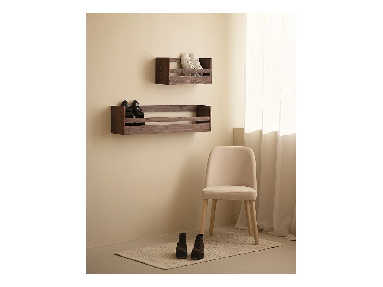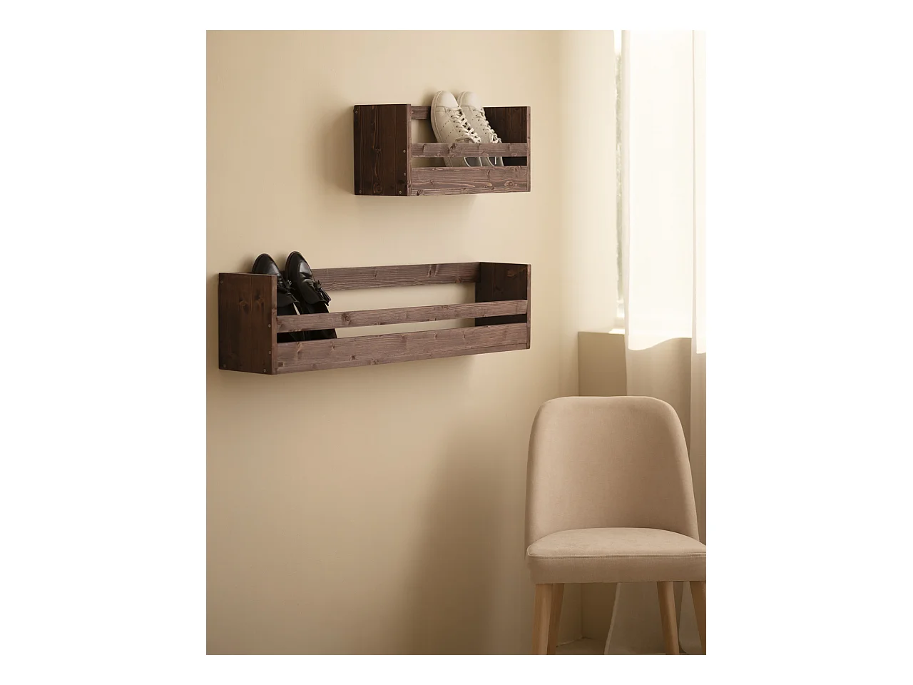 Estante / zapatero de madera maciza de abeto Decowood en tono nogal de 53,5x25cm - BOX - DECOWOOD