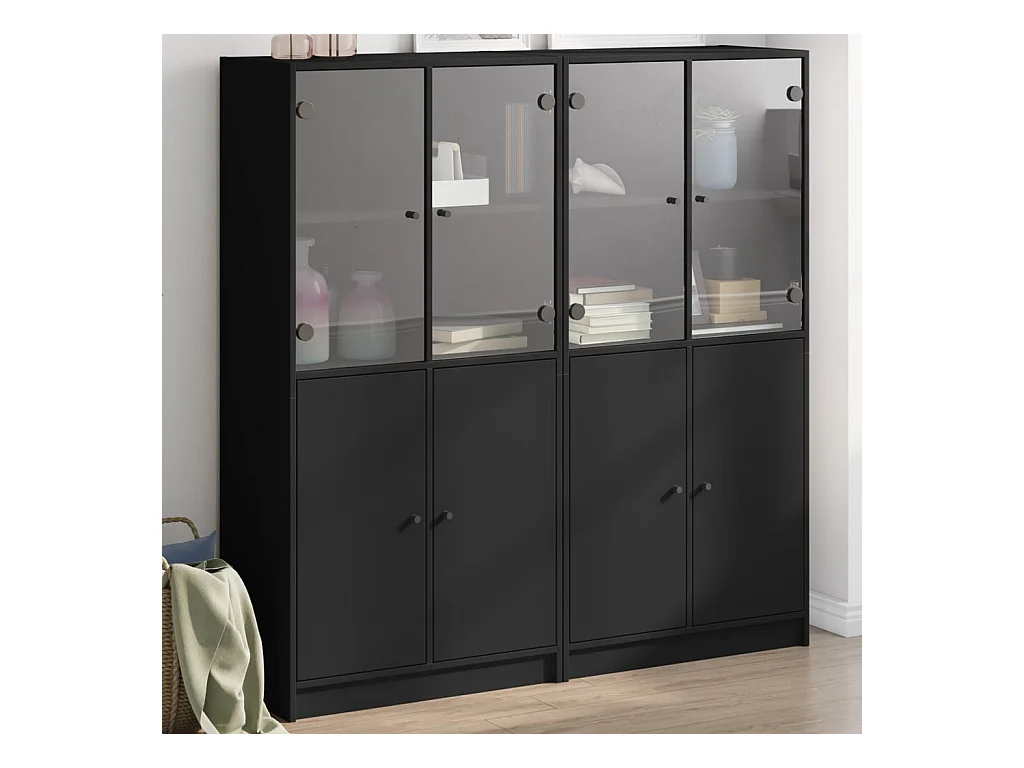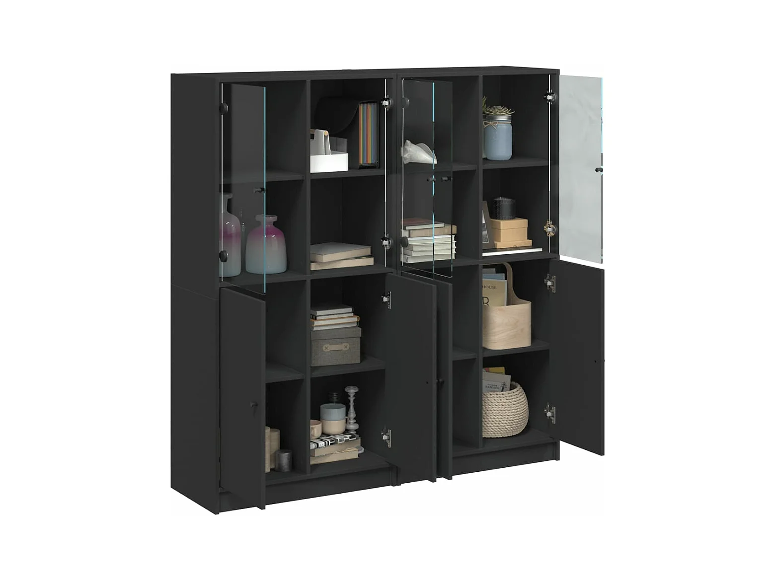 Estantería con puertas madera de ingeniería negro 204x37x75 cm