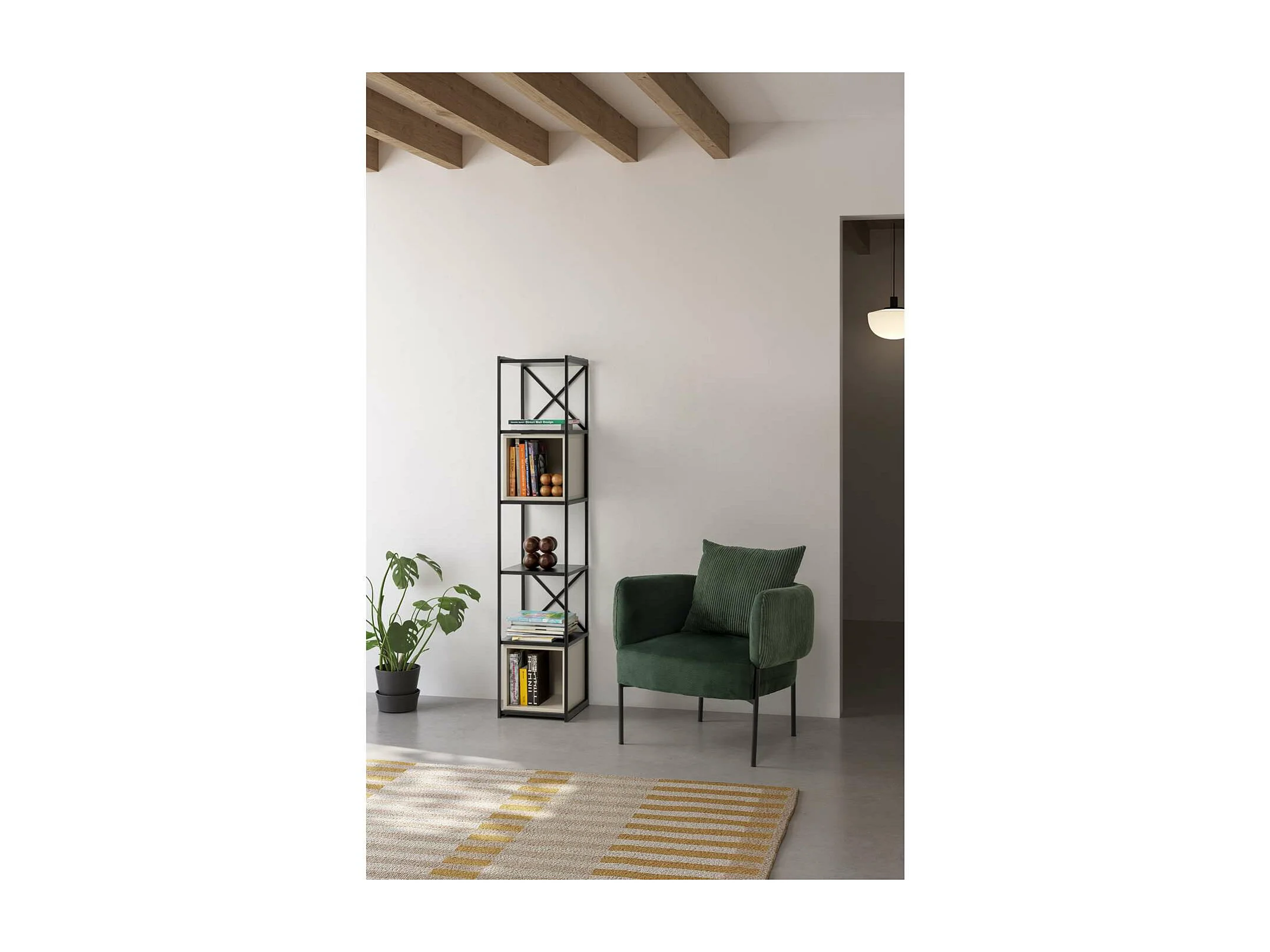 Estantería 2 cubos y estantes modelo Berta-36 acabado negro/crema, 179cm(alto) 36cm(ancho