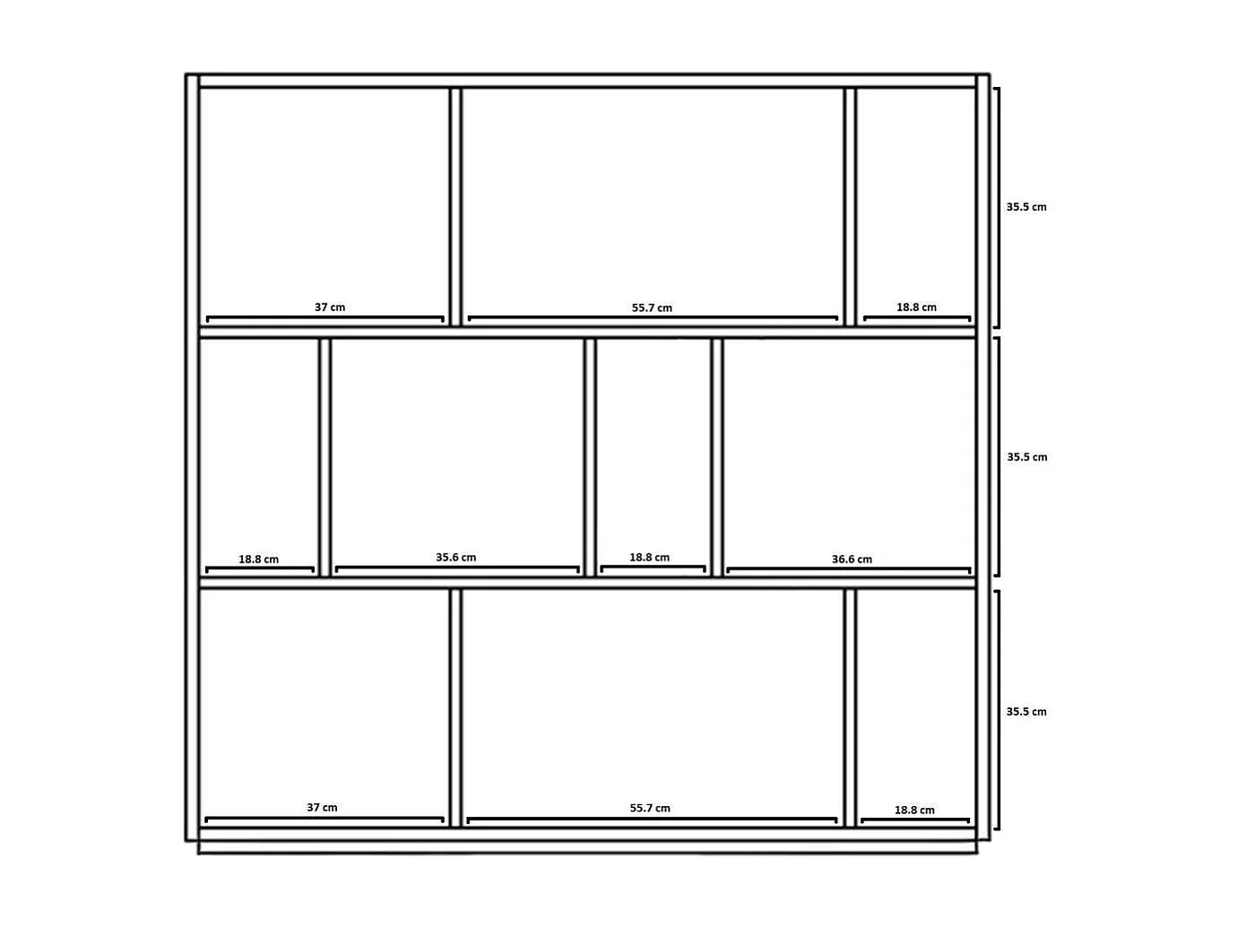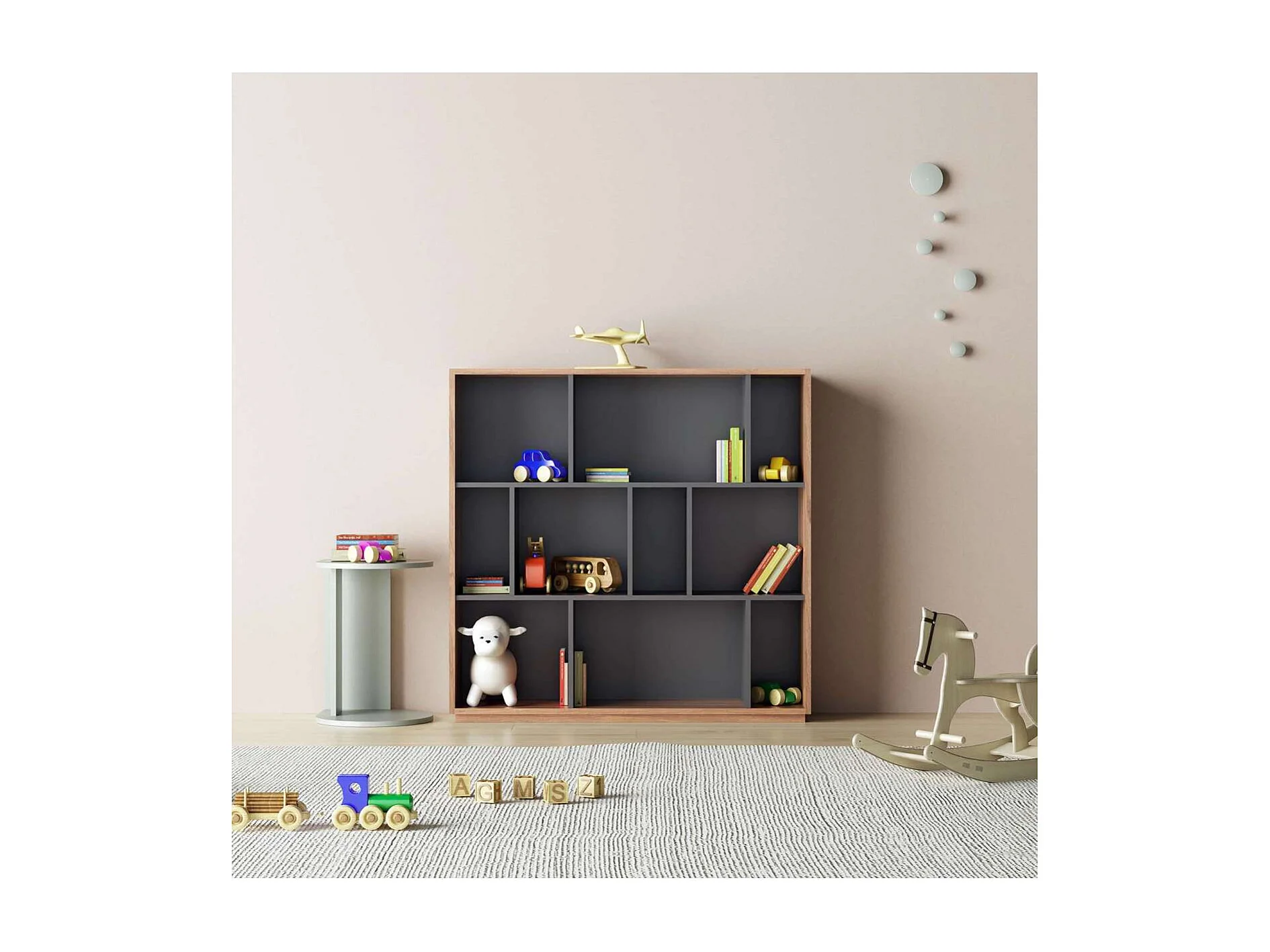 Estantería 3 alturas modelo 546 acabado nogal claro/grafito. 117 cm(alto), 119 cm(ancho)