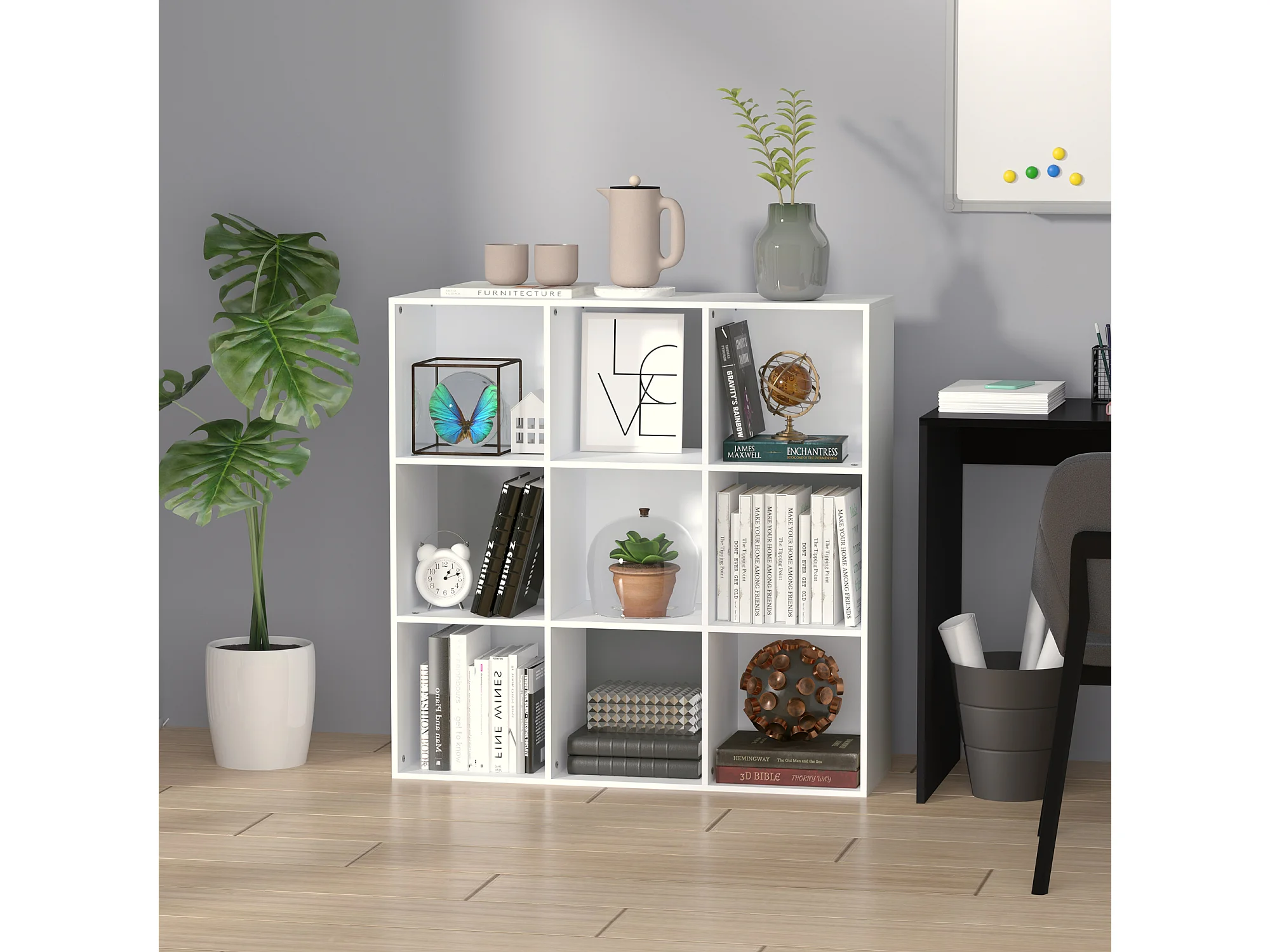 Biblioteca blanca con 8 compartimentos de almacenamiento abiertos - L97,5 x H100 cm