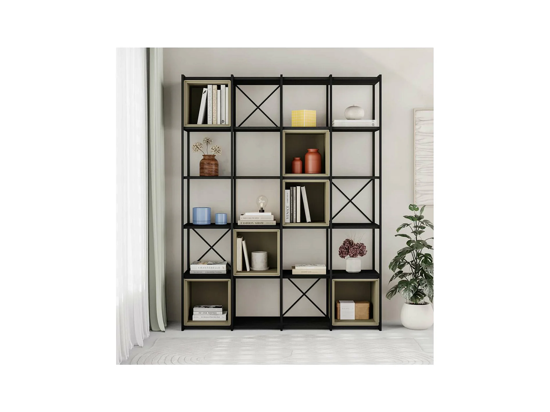 Estantería 5 cubos y estantes modelo Berta-140 acabado negro/crema, 179cm(alto) 139.5cm(a