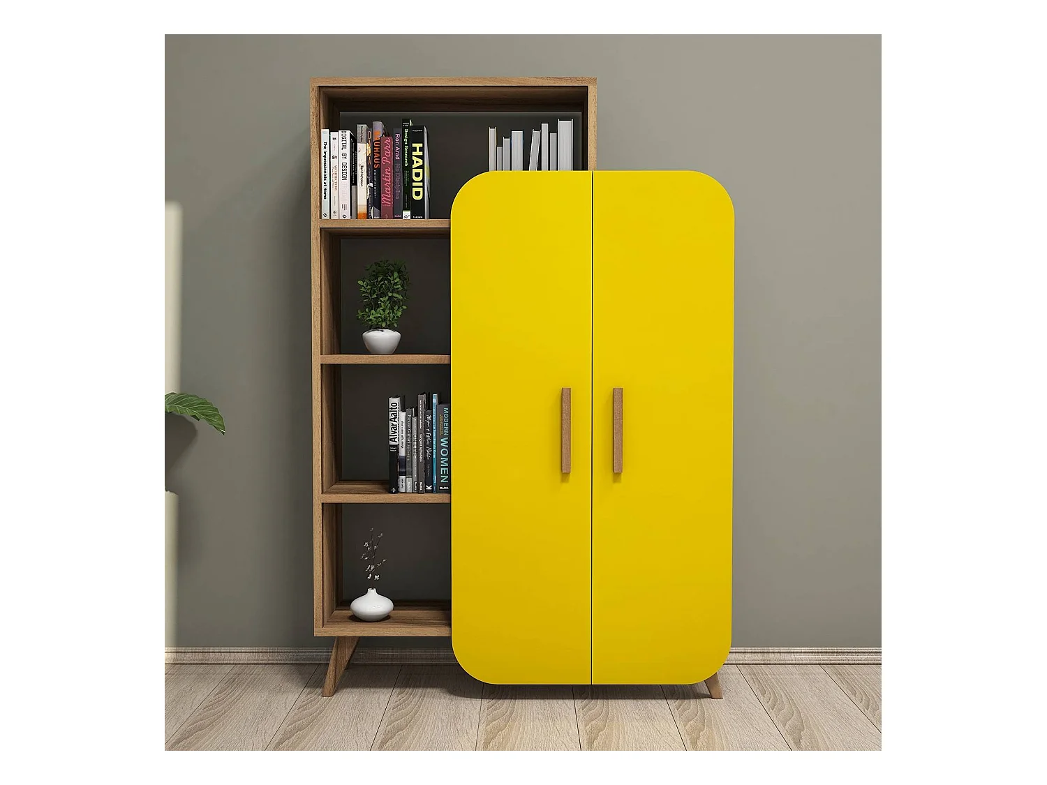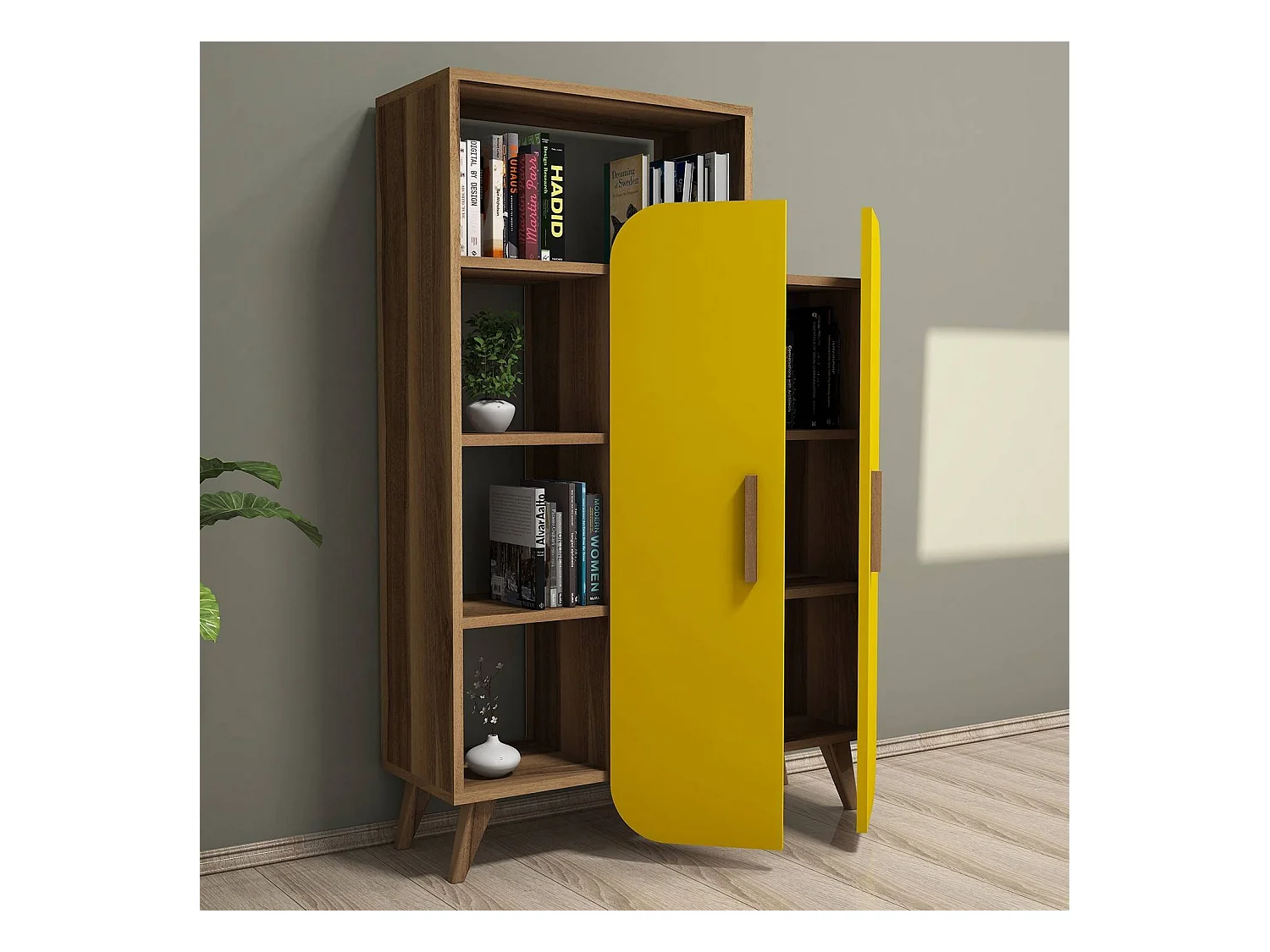 Estantería Bohemia – 90 x 180 x 20 cm – Nogal y Amarillo – Tablero de partículas recubierto de melamina