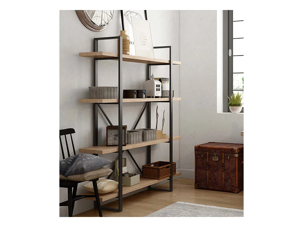Estantería alta de 180x150x30 cm de madera en color beige con estructura metálica Chic