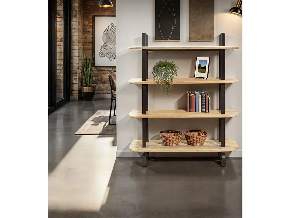 Estantería biblioteca de madera de mango y metal estilo industrial Mykonos