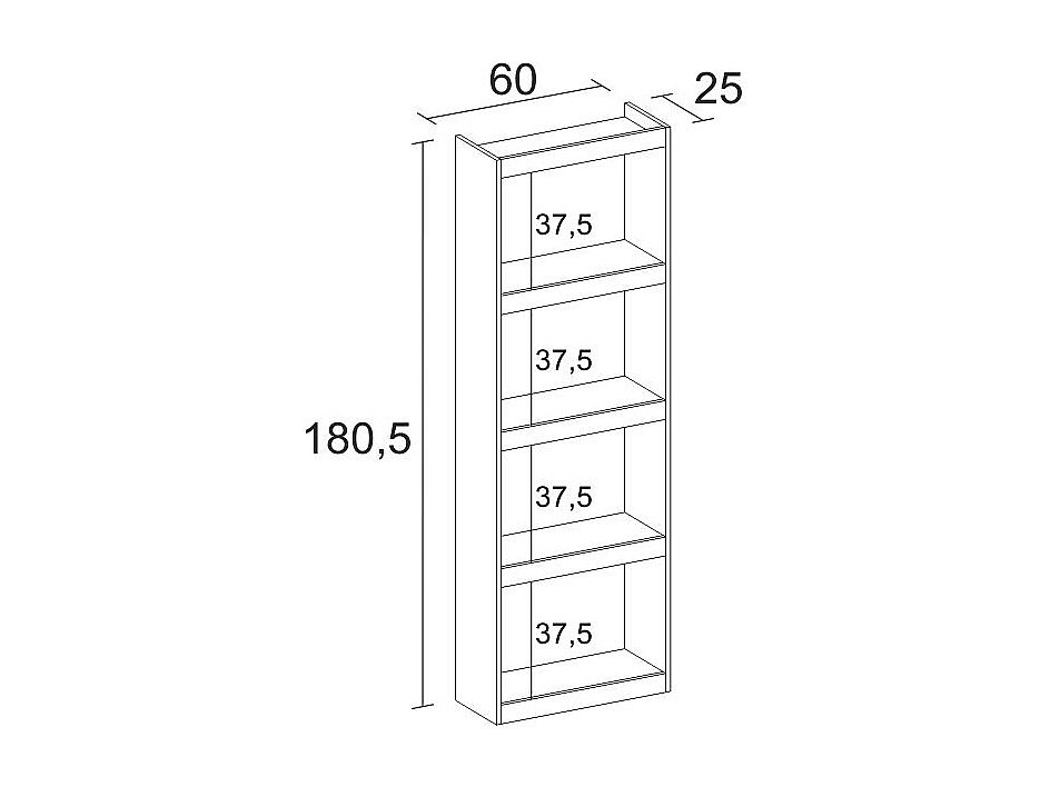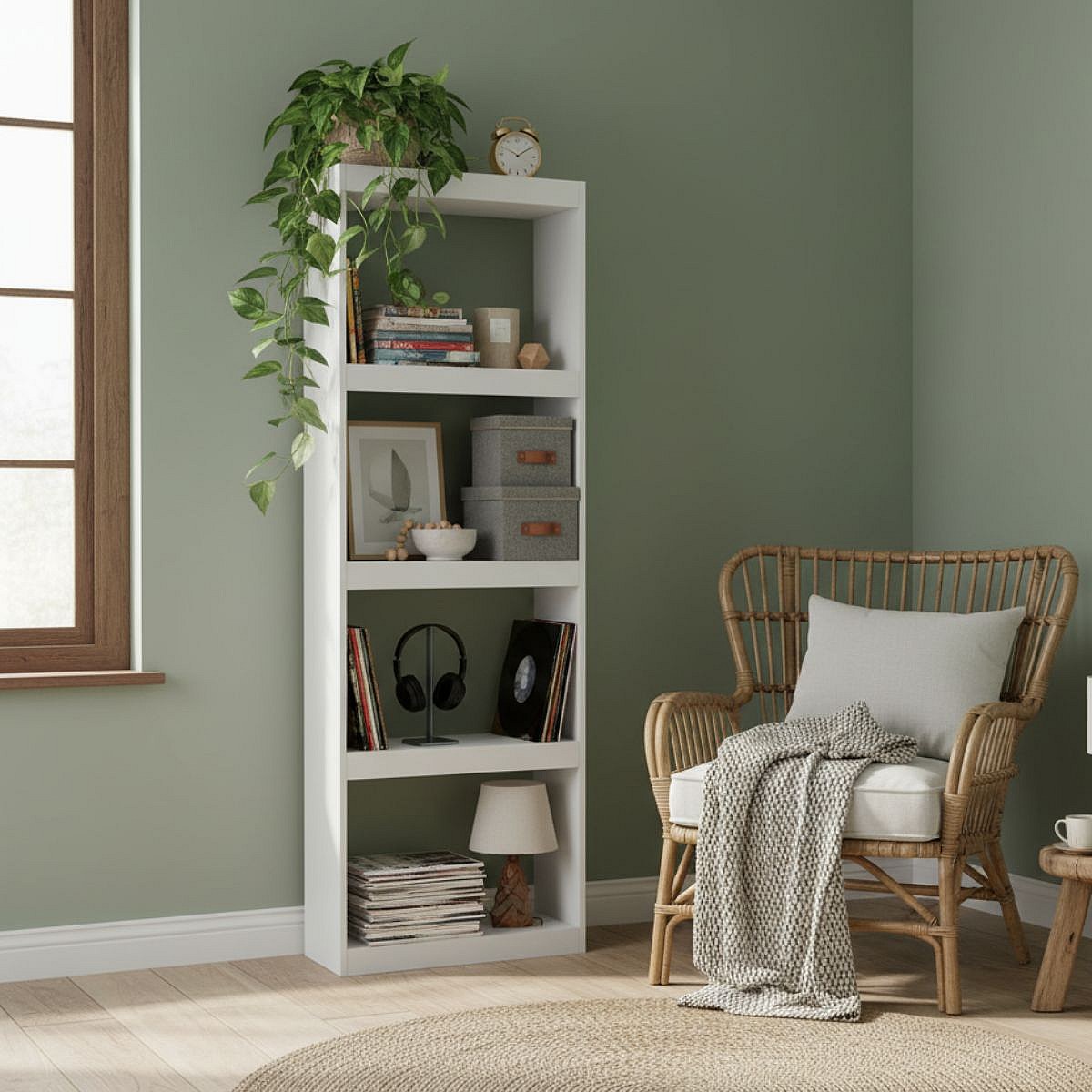 Librería AKORD R80 Blanco 80 cm frente en color Blanco 4 estantes 80x35x180 cm