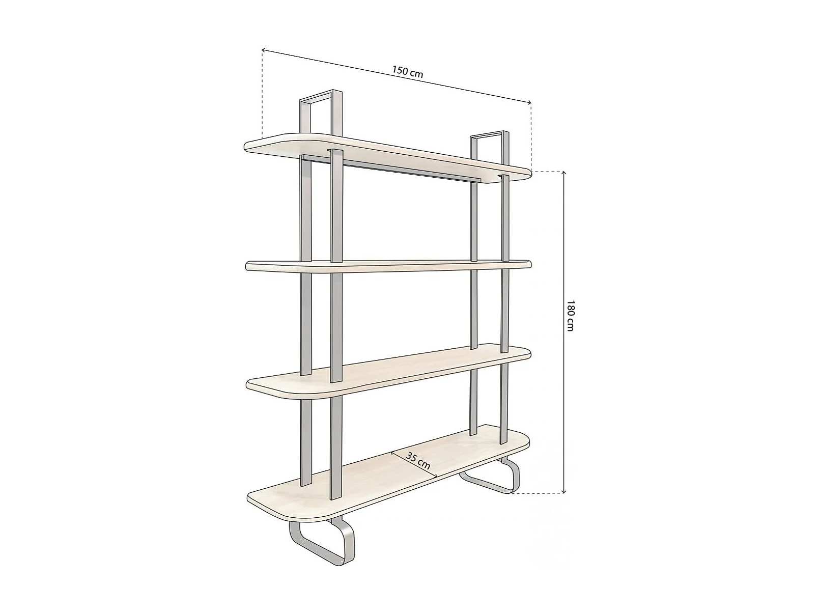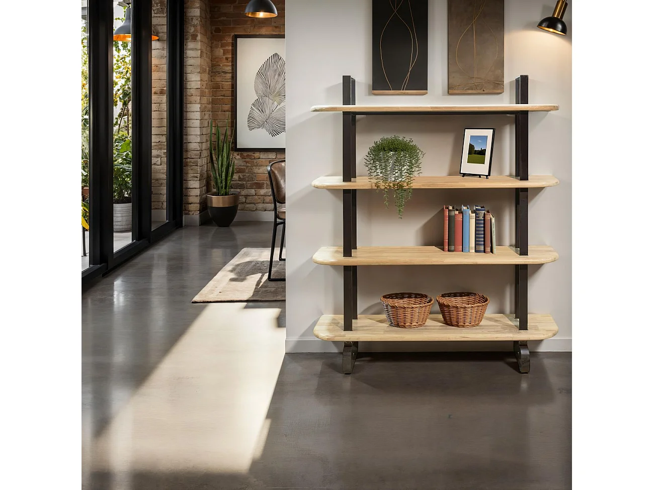 Estantería alta de 4 baldas en madera de roble y estructura en negro 180 cm Padma Negro - Roble