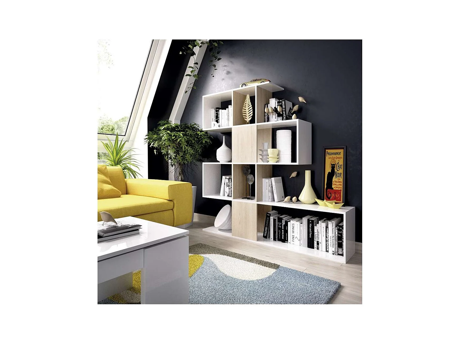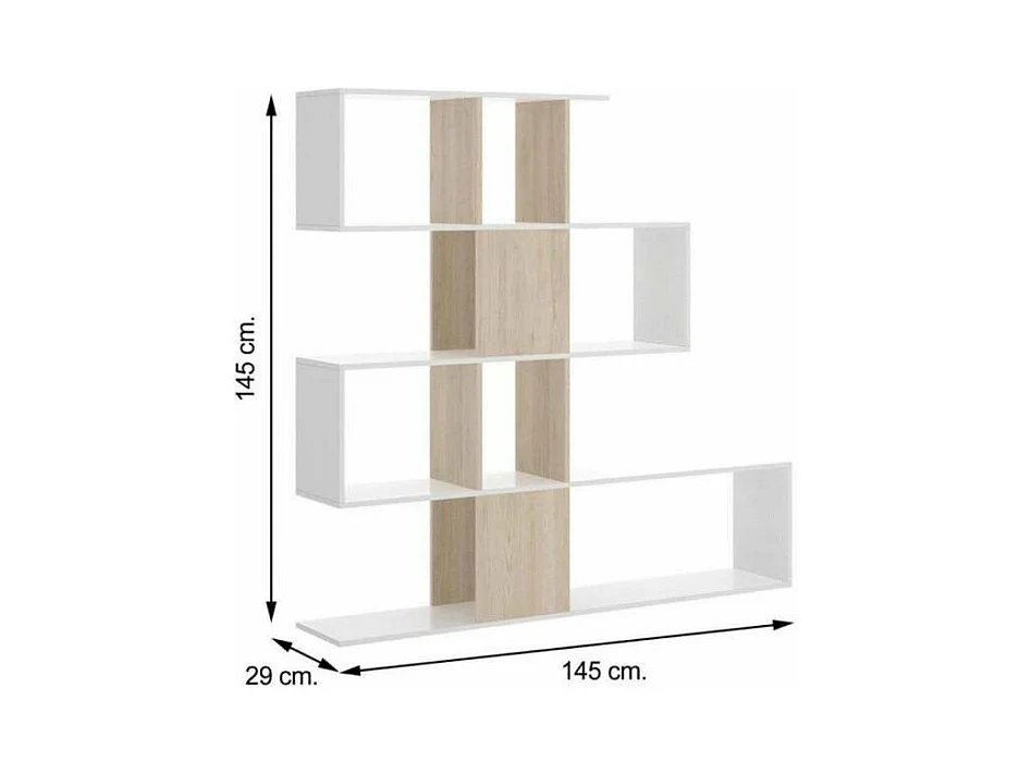 Estantería Andujar acabado blanco brillo/ natural, 145 cm(alto)145 cm(ancho)29 cm(fondo)