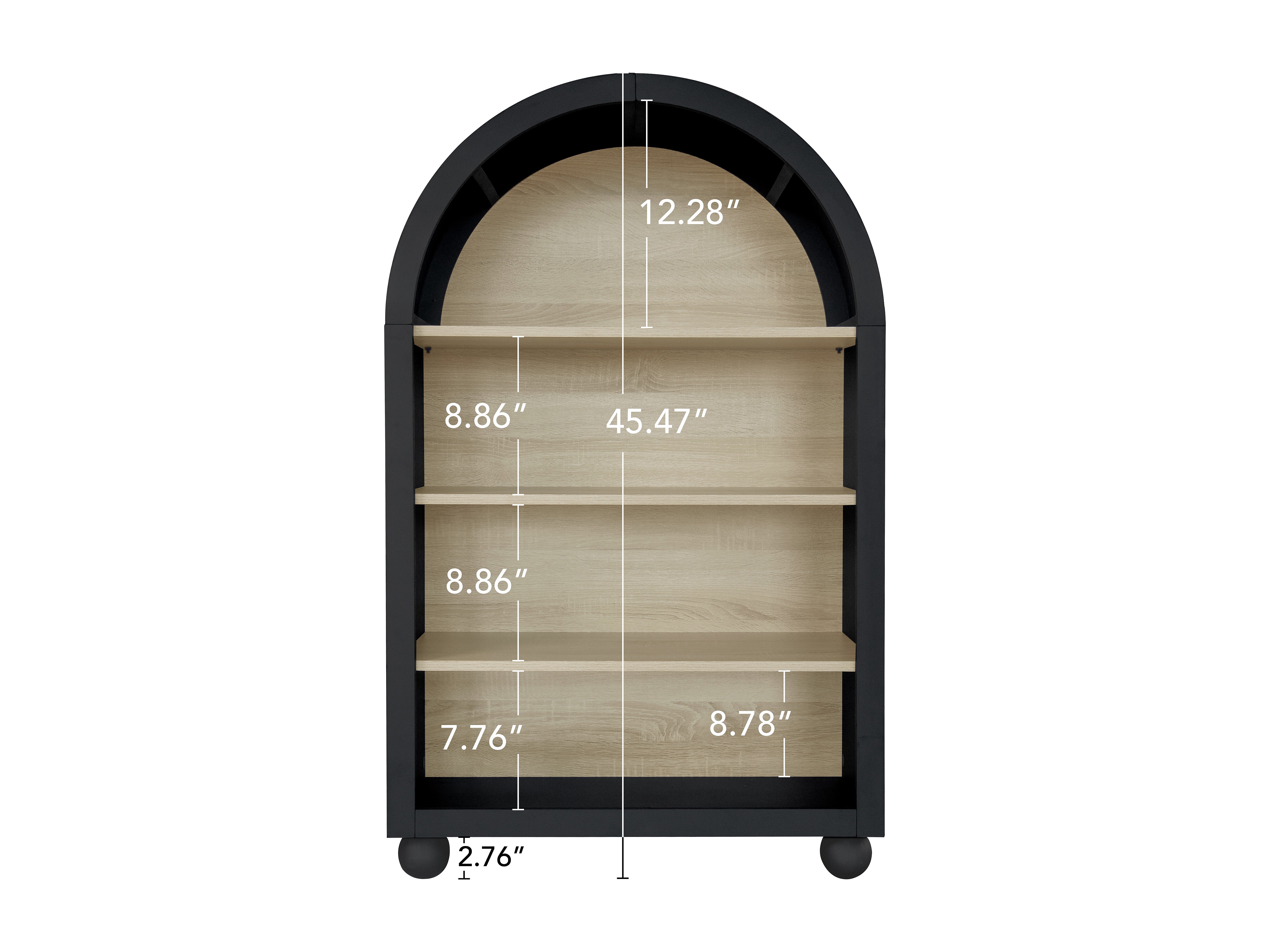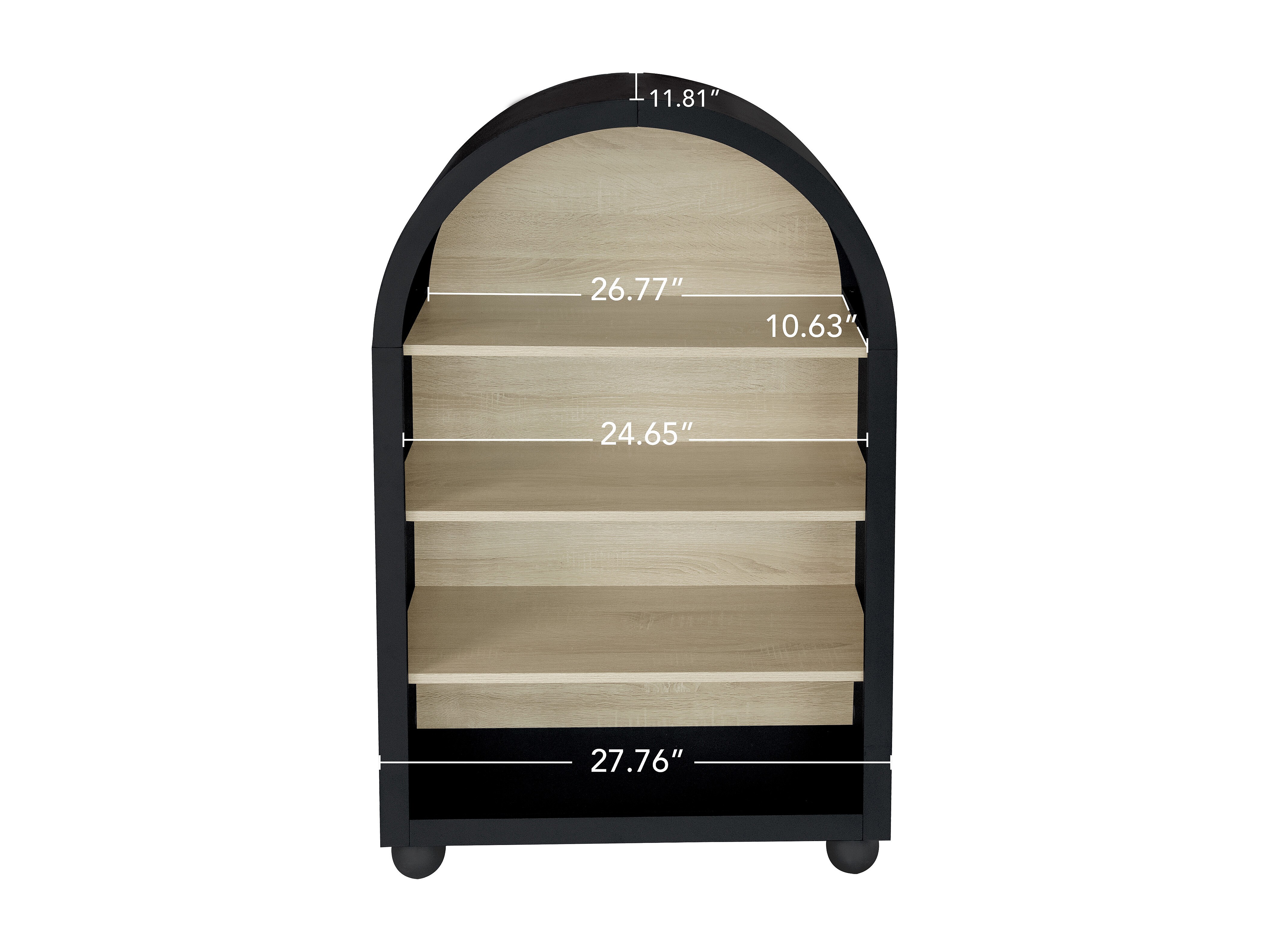 Estantería arqueada negra de 70,5 x 30 x 116 cm, 4 niveles con amplio espacio de almacenamiento, diseño moderno, ideal para dormitorios, oficinas y estudios.