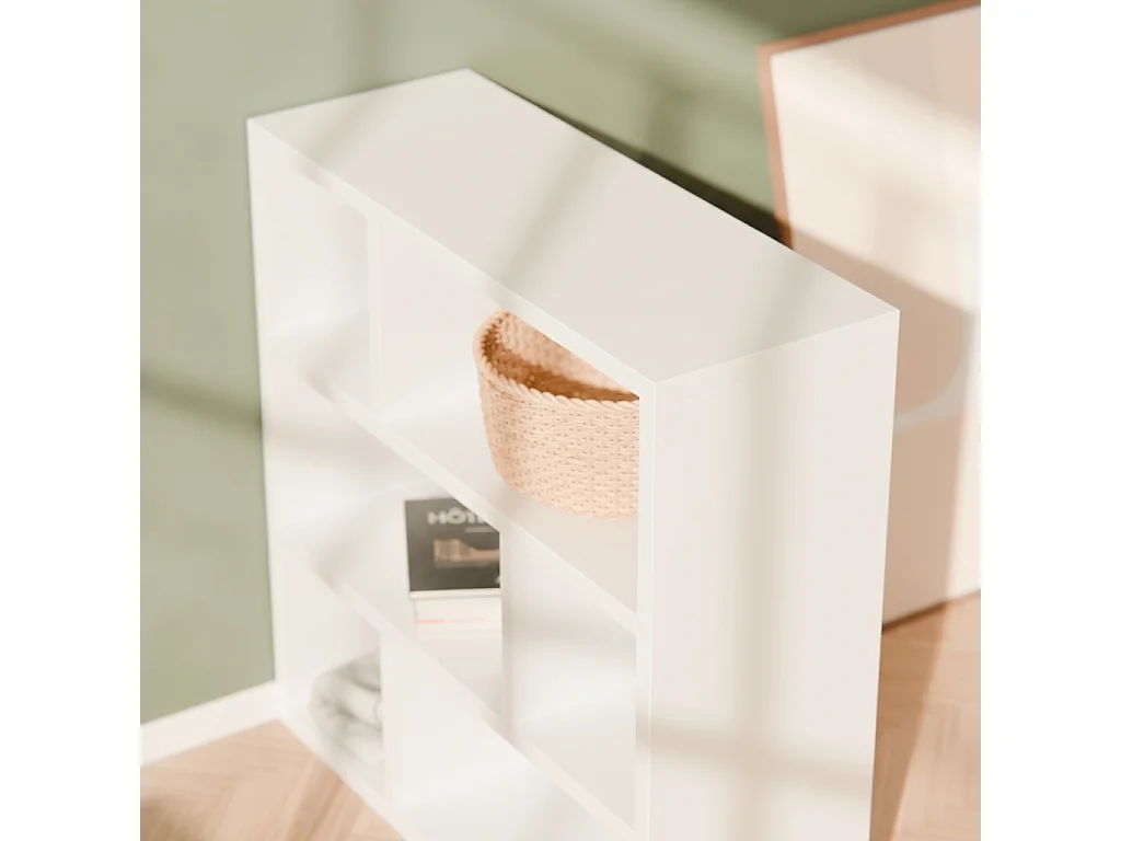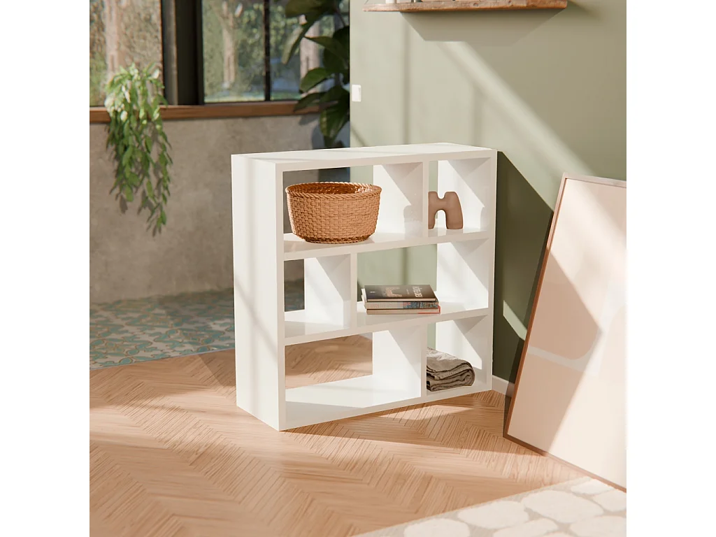 Estantería asimétrica de 3 niveles con 6 compartimentos blanco