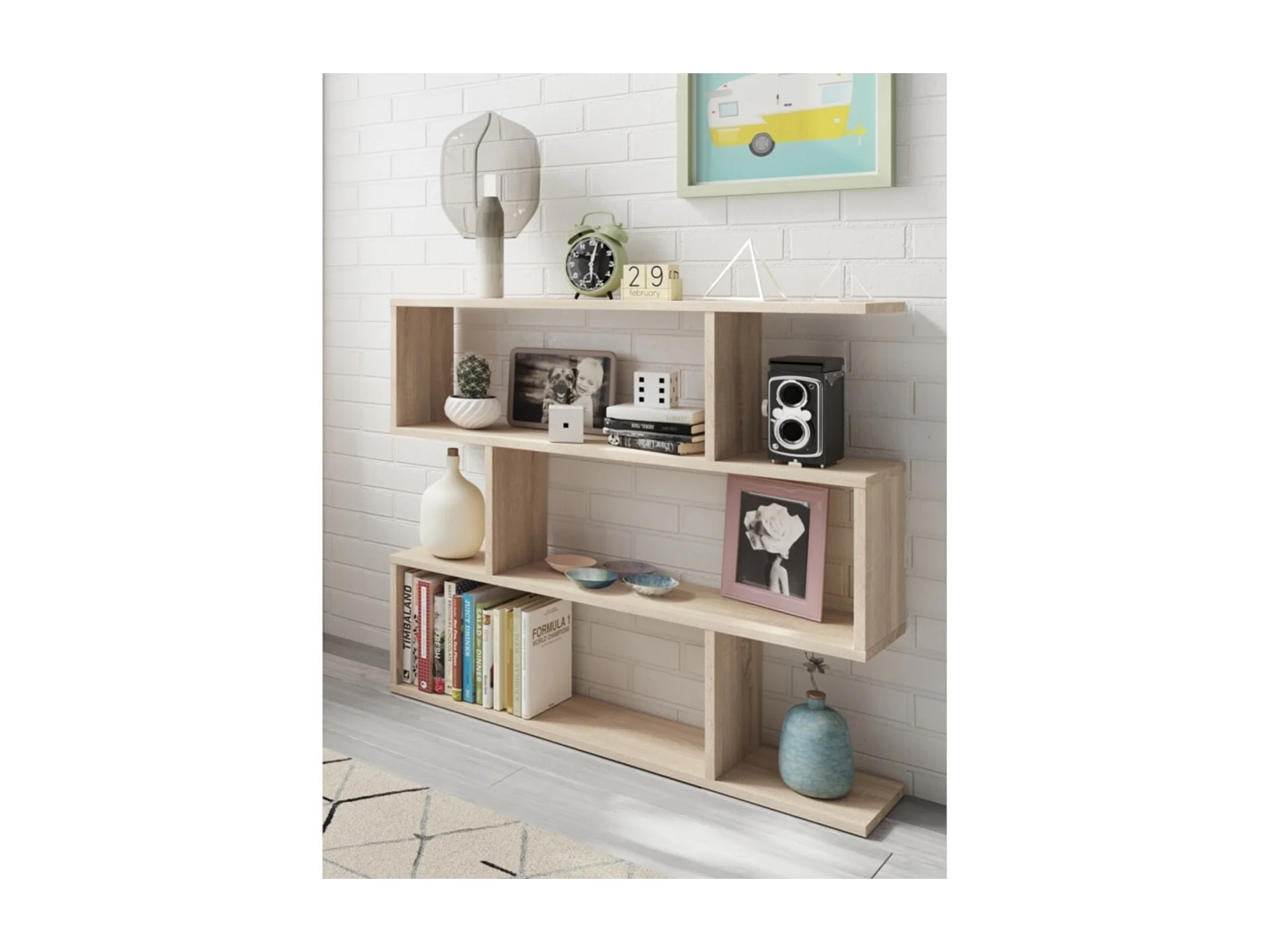 Estantería Opal Blanco Artik (Blanco Mate) - Roble Canadian