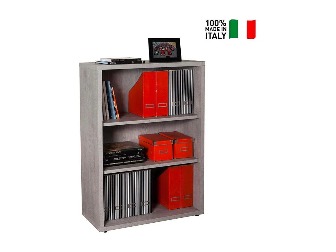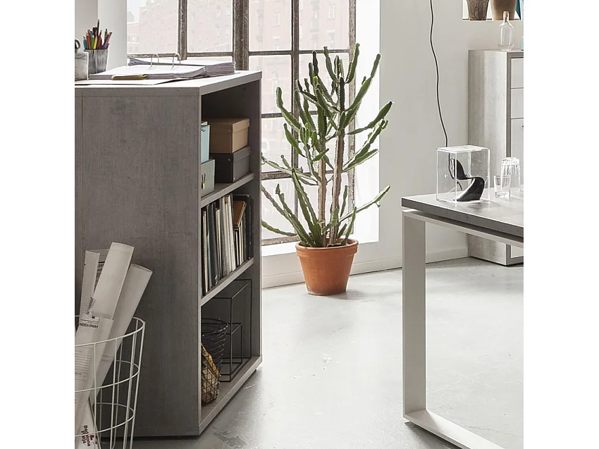 Estantería baja y ancha 3 compartimentos de madera para oficina y despacho Cement