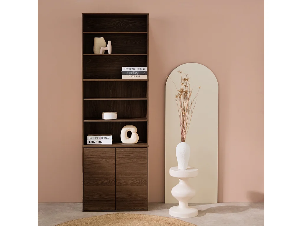 Estante, biblioteca modular con 2 puertas y 8 nichos nogal