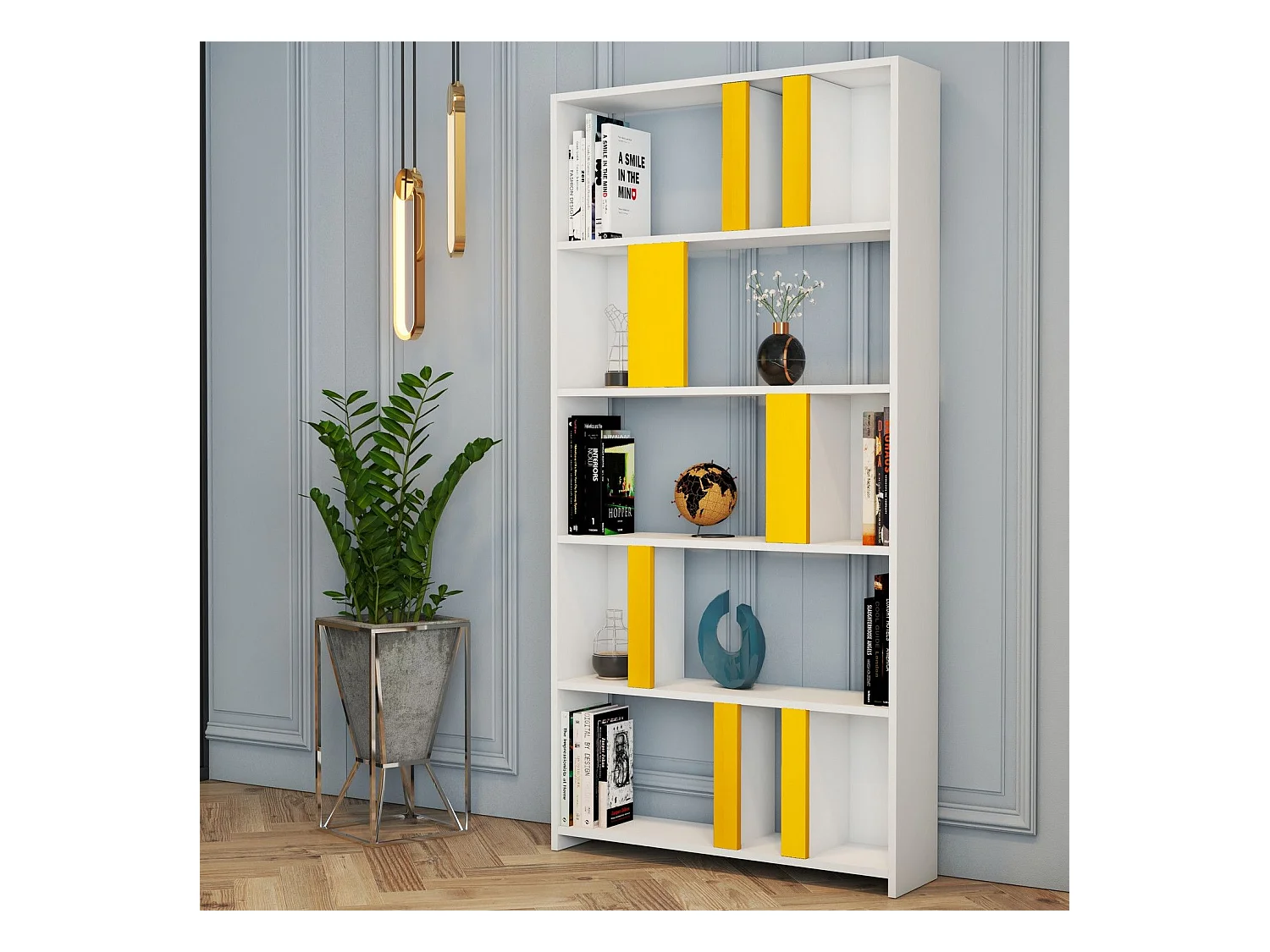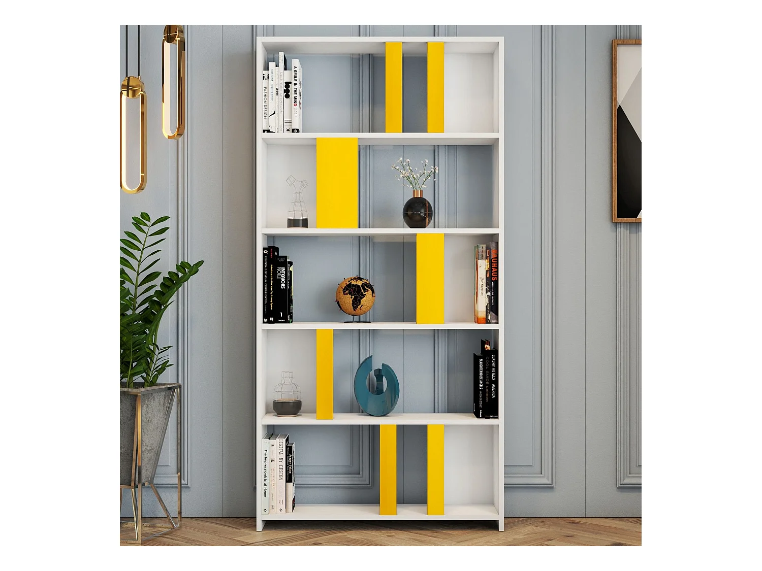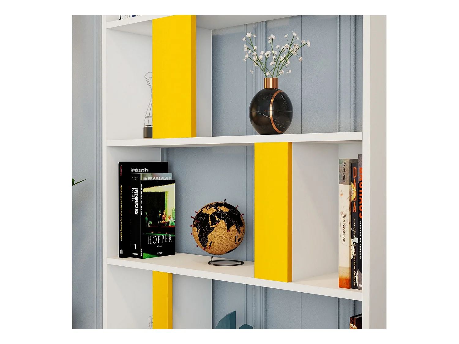Estantería Bohemia – 90 x 180 x 20 cm – Blanco y Amarillo – Tablero de Partículas