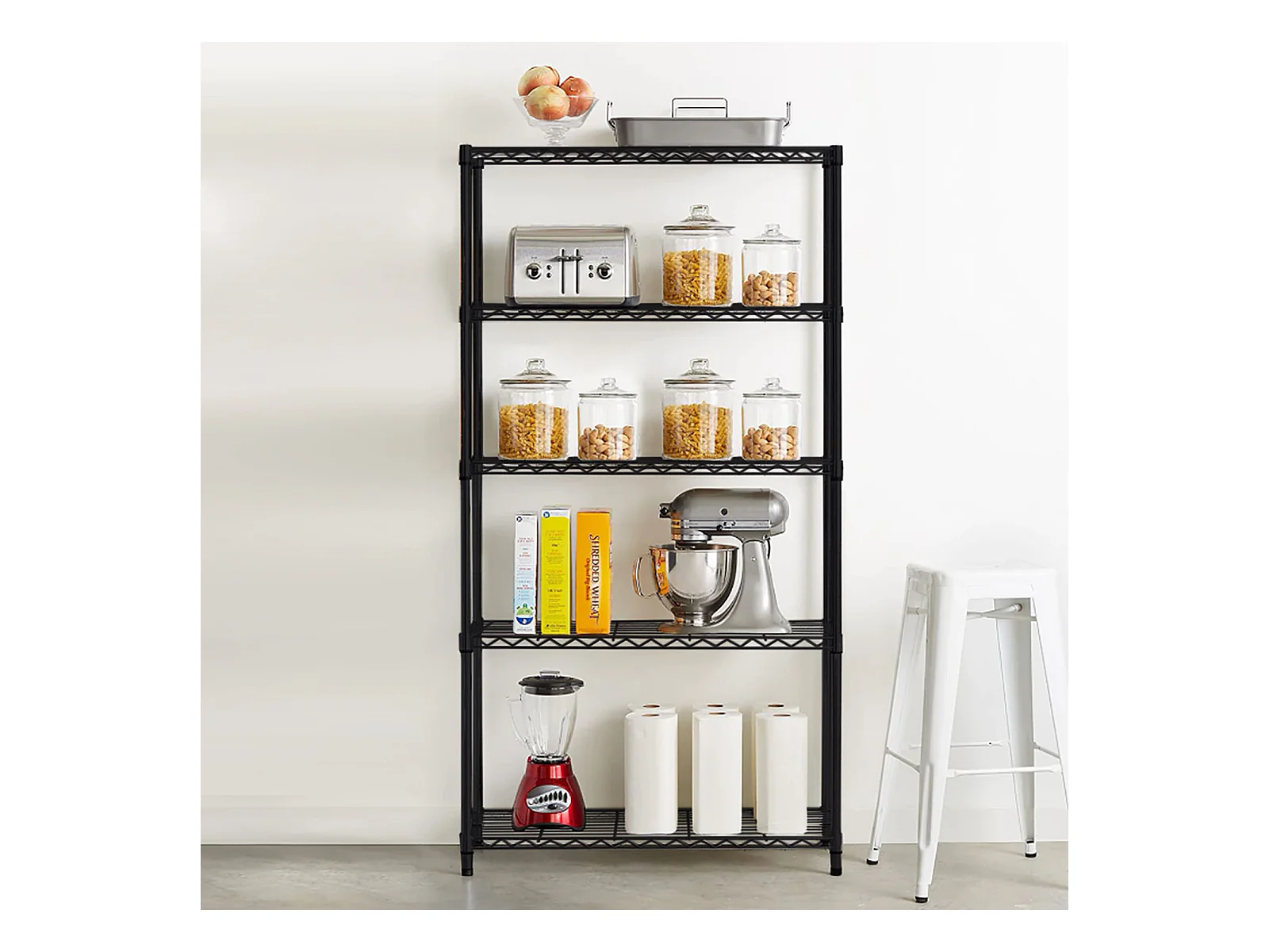 Estantería Metálica con Rejilla CATTERHOUSE Klaus 160 - 57x35x160 cm Estantería de Almacenaje Color Negro con 5 Baldas Soporta hasta 175 kg