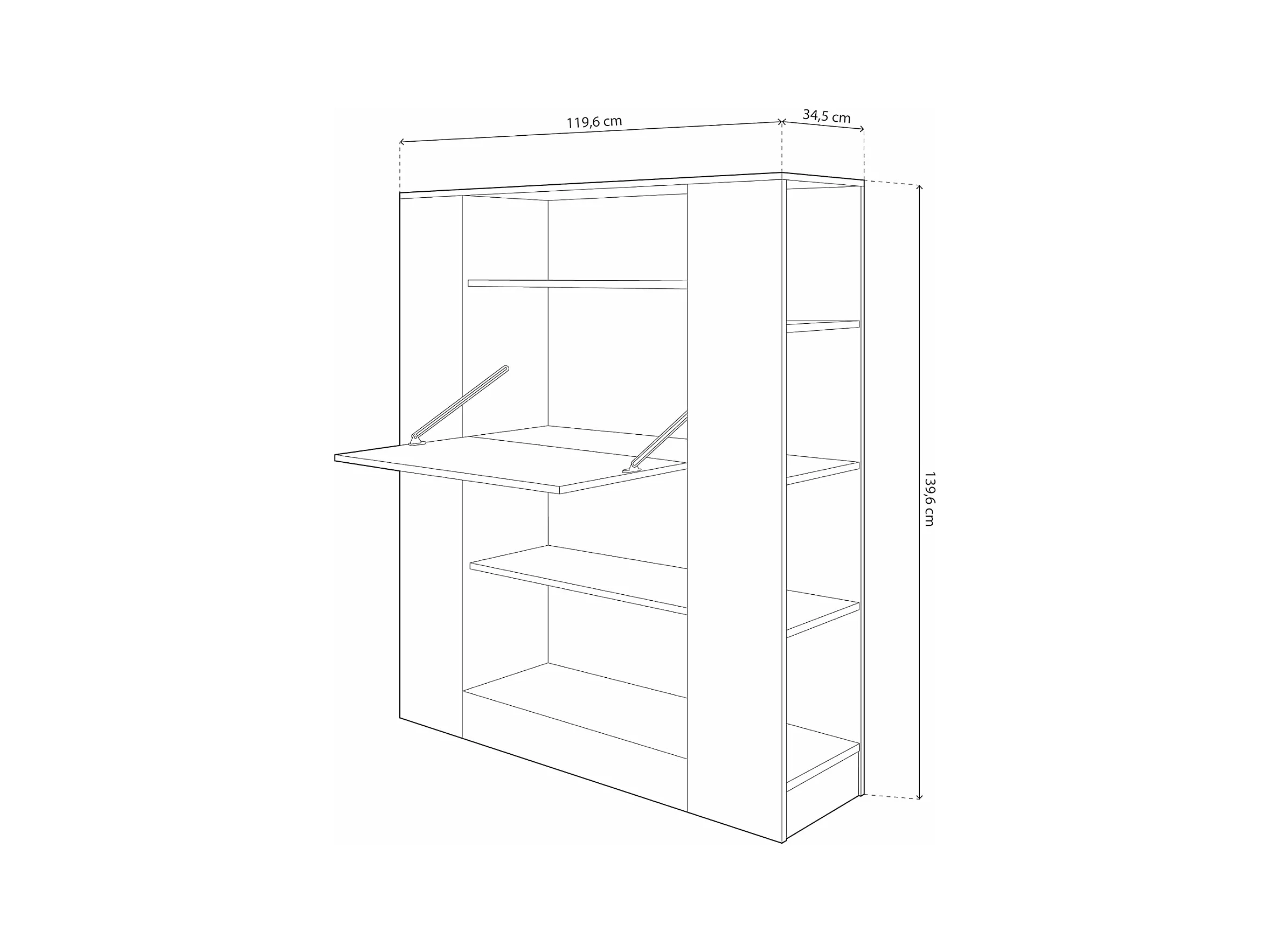 Estantería con Escritorio, Estantería Multifunción, Mesa de Ordenador, Acabado en Cambrian y Grafito, Medidas: 119,6 cm (Largo) x 139,6 cm (Alto) x 34