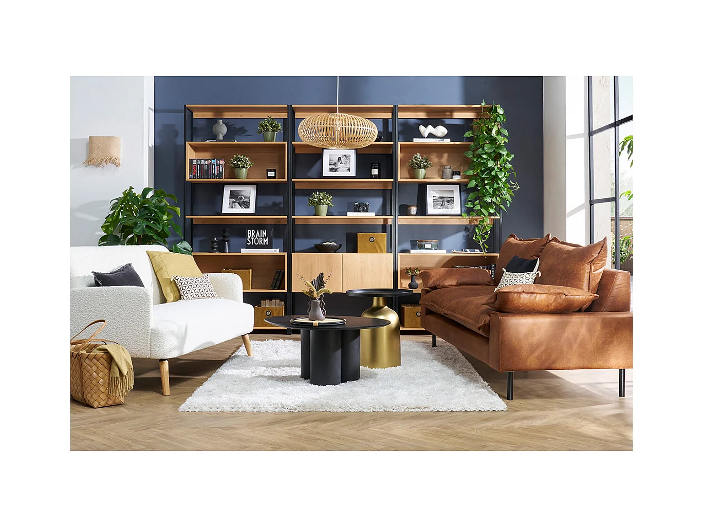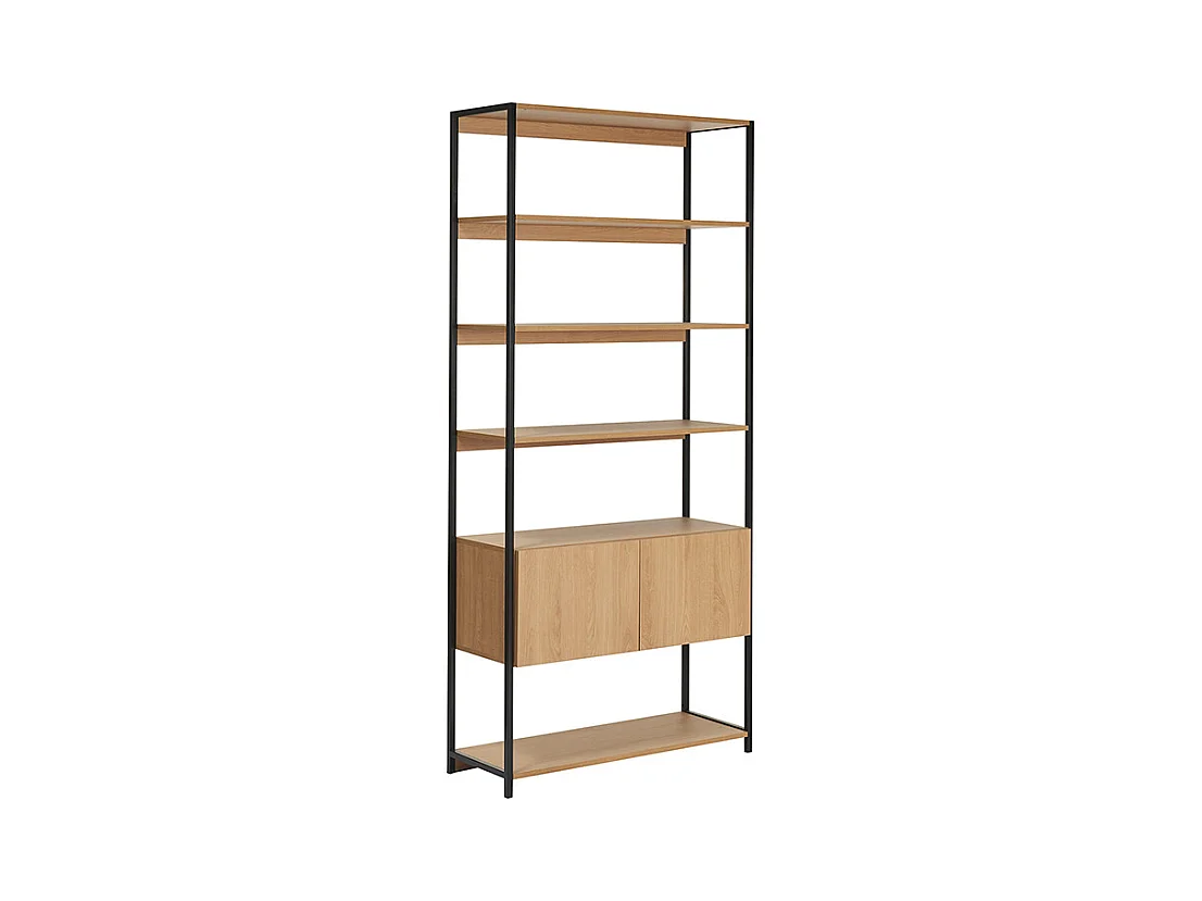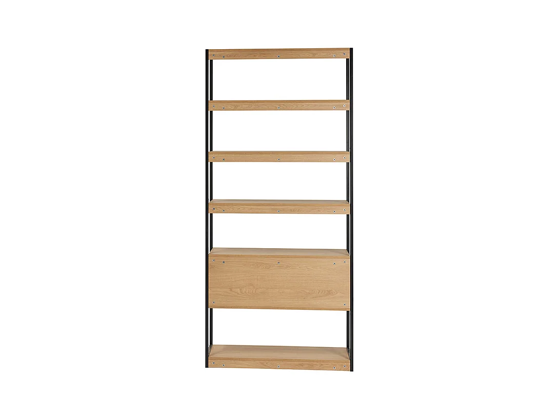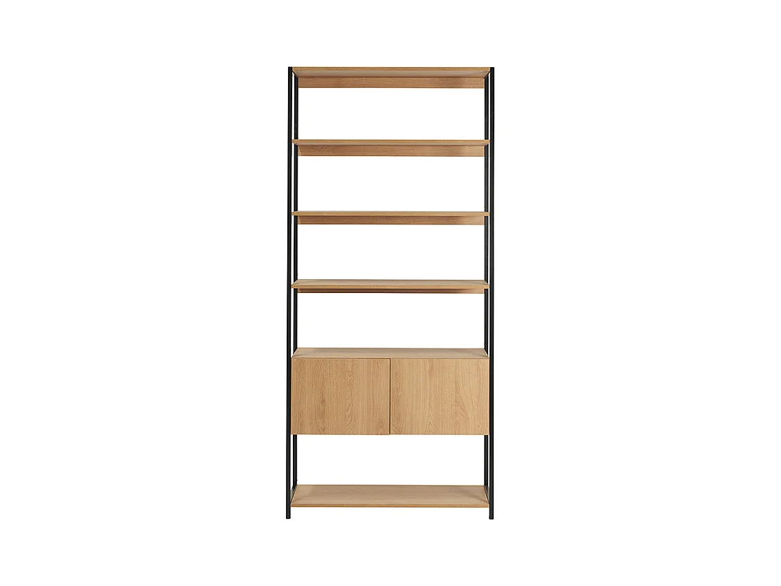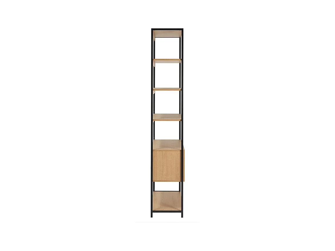 Estantería con espacio de almacenaje cerrado de madera de roble claro y acabado metálico negro 94 cm FLEA