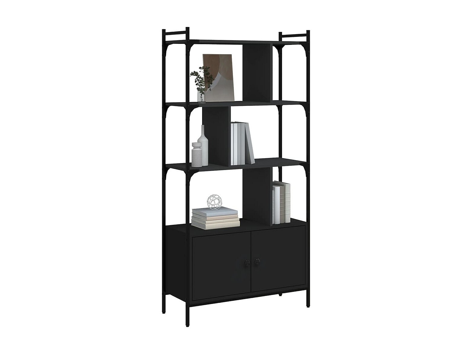 Estantería con puertas madera negra 76,5x30x154,5 cm
