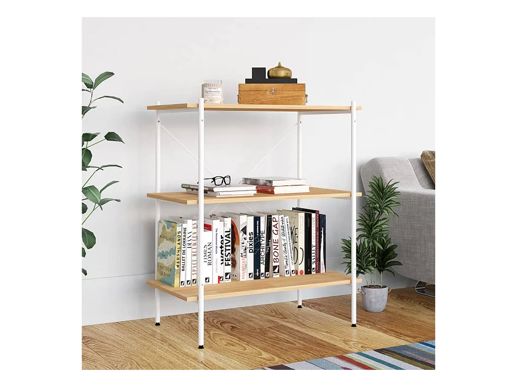Estantería de 3 niveles blanco y roble 80x40x92 cm