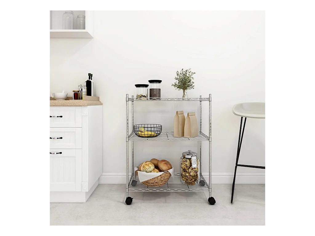 Estantería de 3 niveles con ruedas cromado 60x35x81 cm 150 kg ES682815