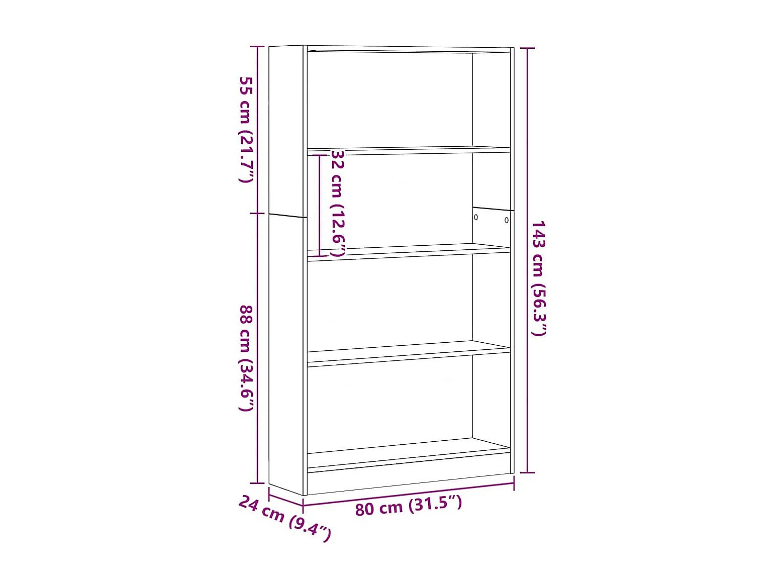 Estantería de 4 niveles de roble negro 80x24x143 cm